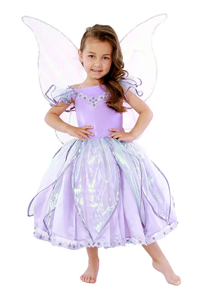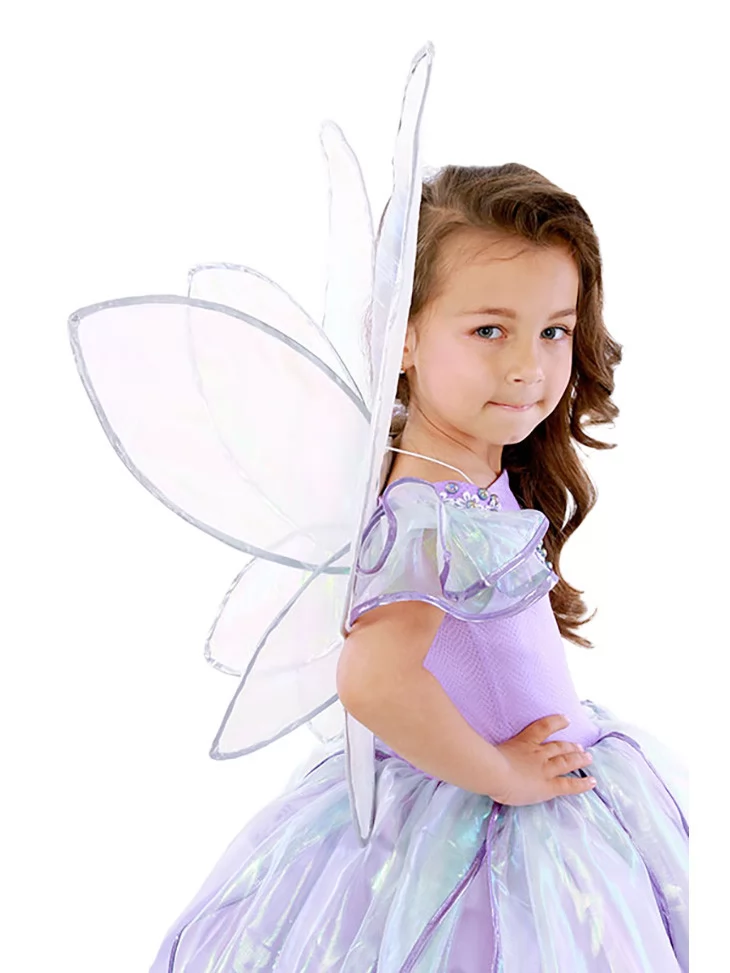 Ніжний та чарівний образ метелика у лавандових відтінках, що ніби прилетів із казкового саду. Повітряна сукня з легкими переливами тканини, прозорі крила та делікатний декор створюють дуже ніжний і святковий образ. Такий костюм стане чудовим варіантом для оренди карнавальних костюмів на дитячі ранки, виступи та фотосесії.