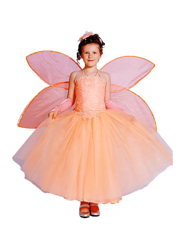 Костюм Персиковий метелик подарує дитині відчуття чарівного польоту та казкової радості — обирайте прокат карнавальних костюмів для яскравих святкових моментів без зайвих турбот.