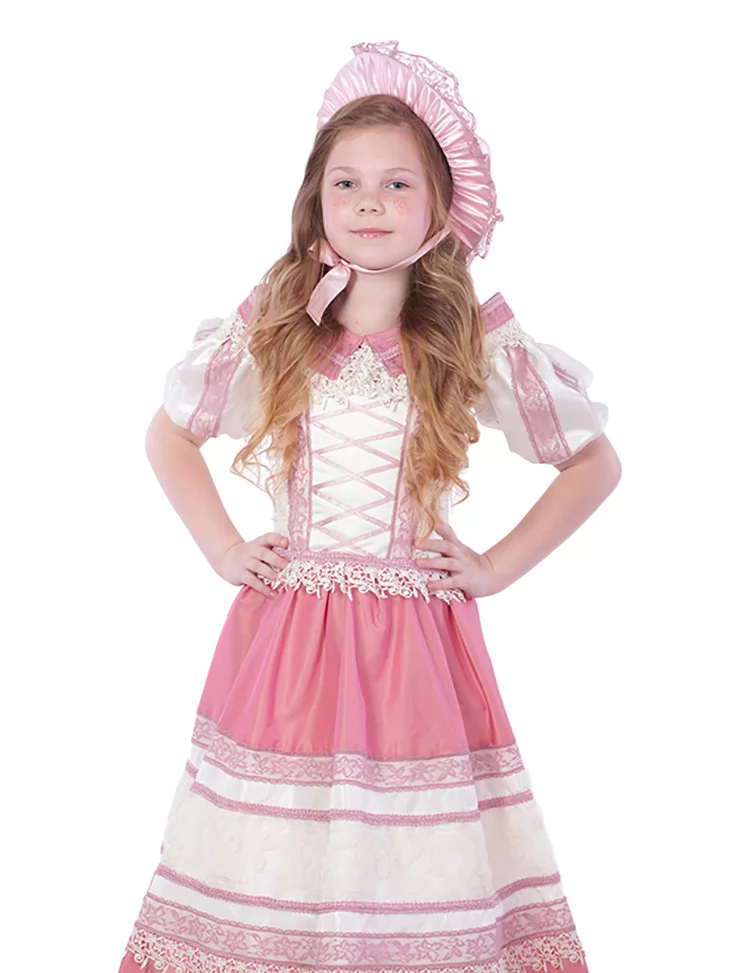 Цей образ натхненний традиційною баварською культурою та атмосферою європейських ярмарків і свят. Ніжна кольорова гама, корсет із декоративною шнурівкою та пишна спідниця з мереживом створюють образ охайної, святкової та дуже милої баварської дівчинки. Прекрасний вибір для оренди карнавальних костюмів на виступи, фотосесії, шкільні заходи та тематичні свята.