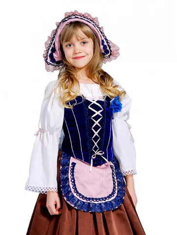 Цей образ відтворює атмосферу традиційної Баварії з її народними святами, ярмарками та затишними європейськими мотивами. Контрастний корсет із декоративною шнурівкою, довга спідниця глибокого кольору та накидка з капюшоном створюють образ охайної, впізнаваної баварської дівчинки. Чудовий вибір для оренди карнавальних костюмів на виступи, фотосесії, шкільні свята та тематичні заходи.