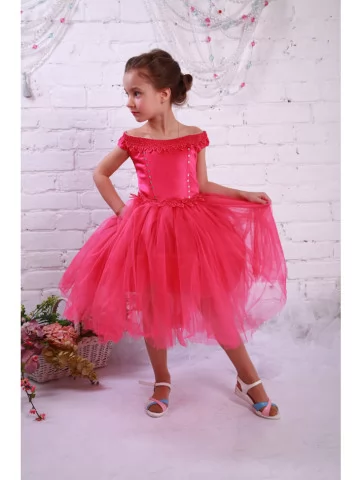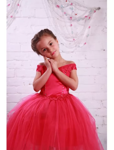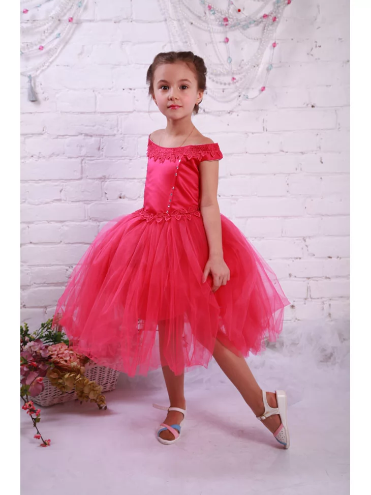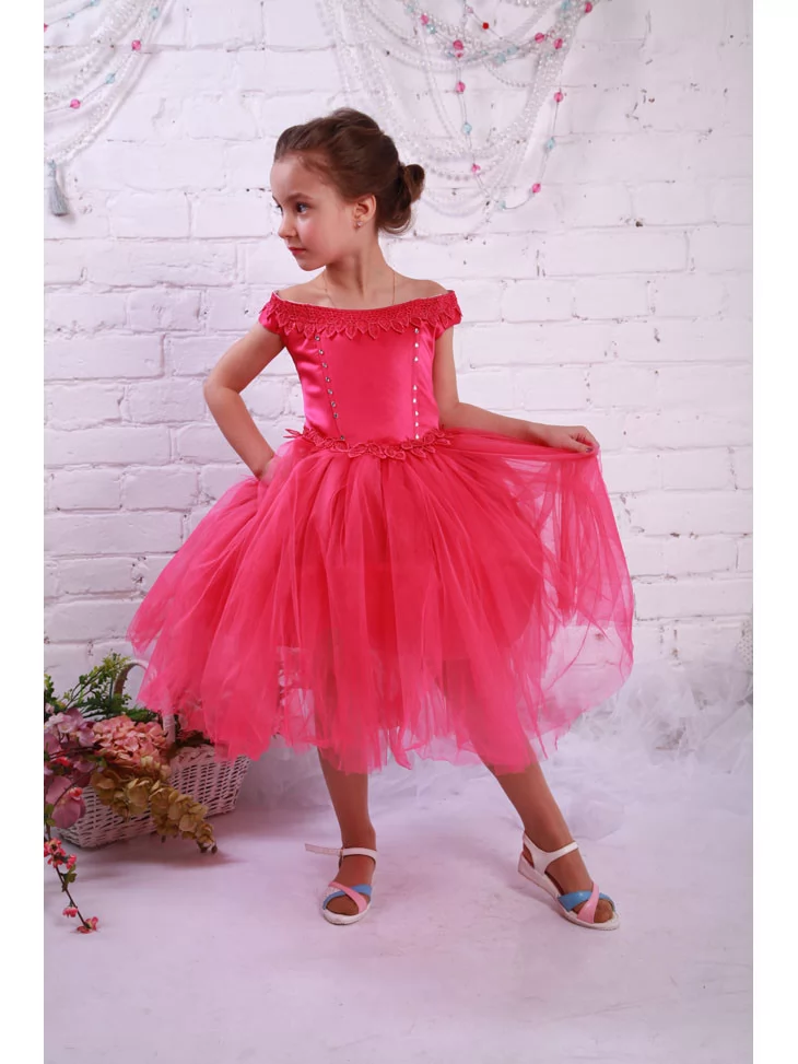 Малинова сукня з атласним ліфом, декоративною обробкою по краю плечей і повітряною багатошаровою фатиновою спідницею створює справжню атмосферу казкового балу. Вона чудово підходить для виступів, фотосесій і дитячих свят та є прекрасним варіантом для оренди карнавальних костюмів, коли хочеться ефектного образу без зайвих турбот.