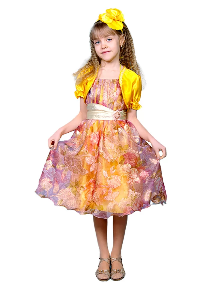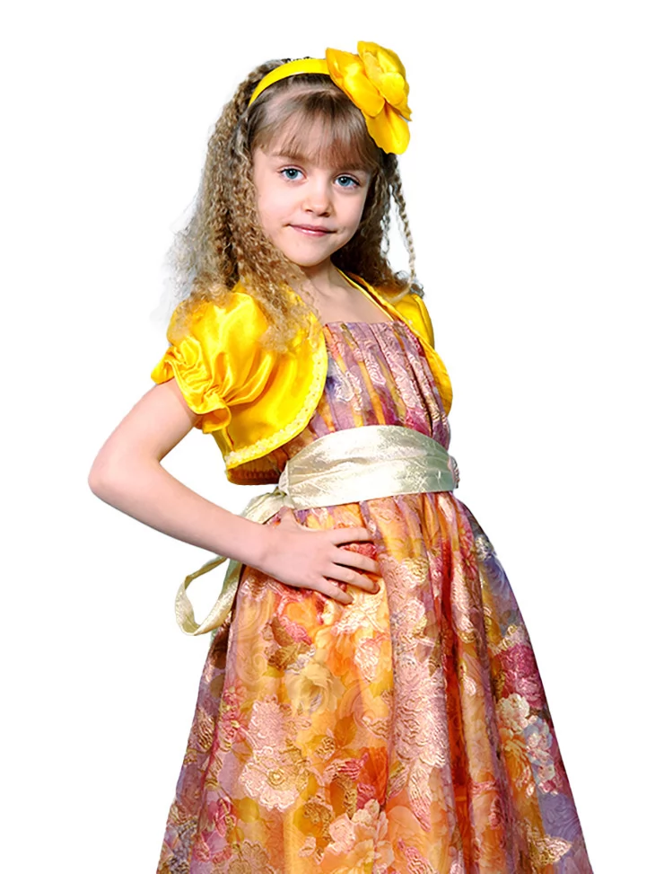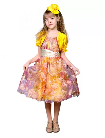 Цей ніжний костюм створює яскравий і теплий весняний образ маленької леді та стане чудовим вибором у прокаті карнавальних костюмів для святкового перевтілення.