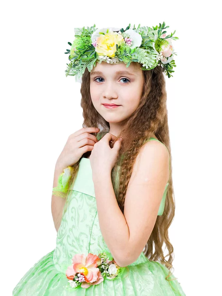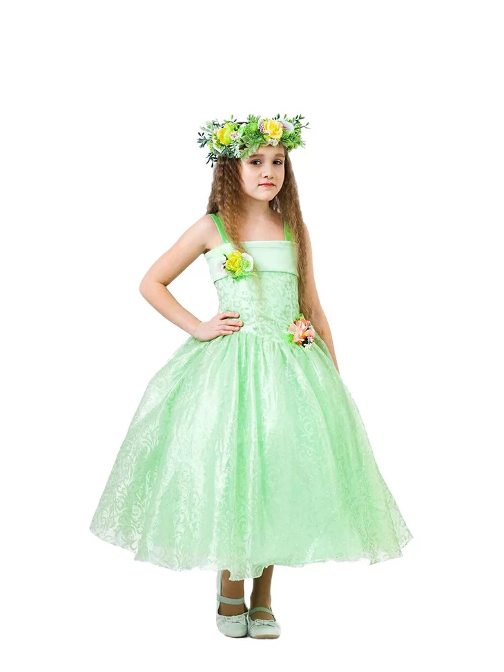 Ніжний, світлий образ весни, наповнений свіжістю зелених пагонів, першими квітами та атмосферою оновлення. Цей витончений костюм Весни поєднує легку мереживну сукню у м’ятно-зеленому відтінку з повітряною пишною спідницею, що красиво рухається під час кожного кроку. Квіткові акценти на сукні та розкішний вінок створюють відчуття справжньої весняної казки. Ідеальний варіант для оренда карнавальних костюмів на дитячі свята, театралізовані виступи та фотосесії у стилі природи й ніжності.