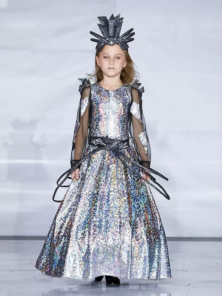 Костюм Срібна Галактика Колекції Silver Shine — це поєднання сучасності, блиску та космічної енергії, а прокат карнавальних костюмів допоможе створити справді незабутній вихід на сцену.
