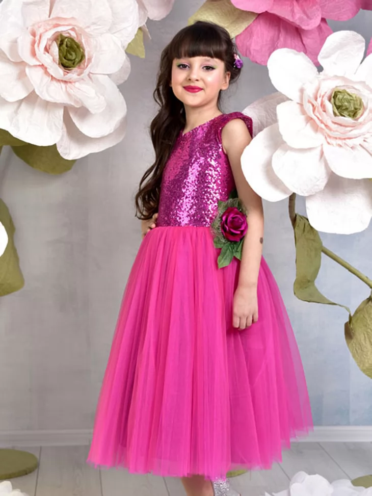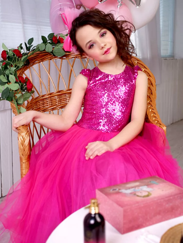 Яскравий, стильний і дуже святковий образ, натхненний світом гламурної Барбі. Насичений рожевий колір, блискучий верх із паєтками та пишна фатінова спідниця створюють ефект справжньої маленької зірки. Такий образ виглядає дуже фотогенічно й чудово підходить для оренди карнавальних костюмів на свята, фотосесії та дитячі вечірки.
