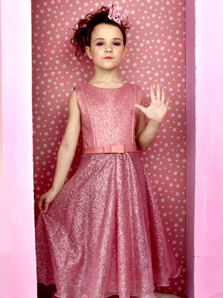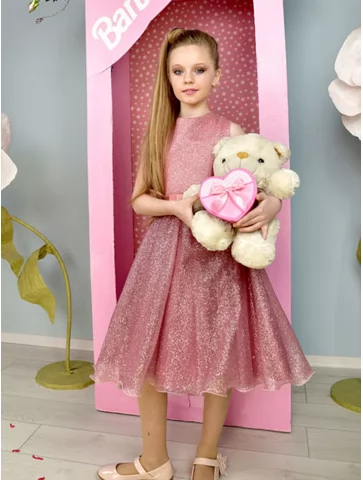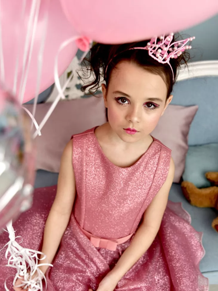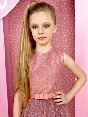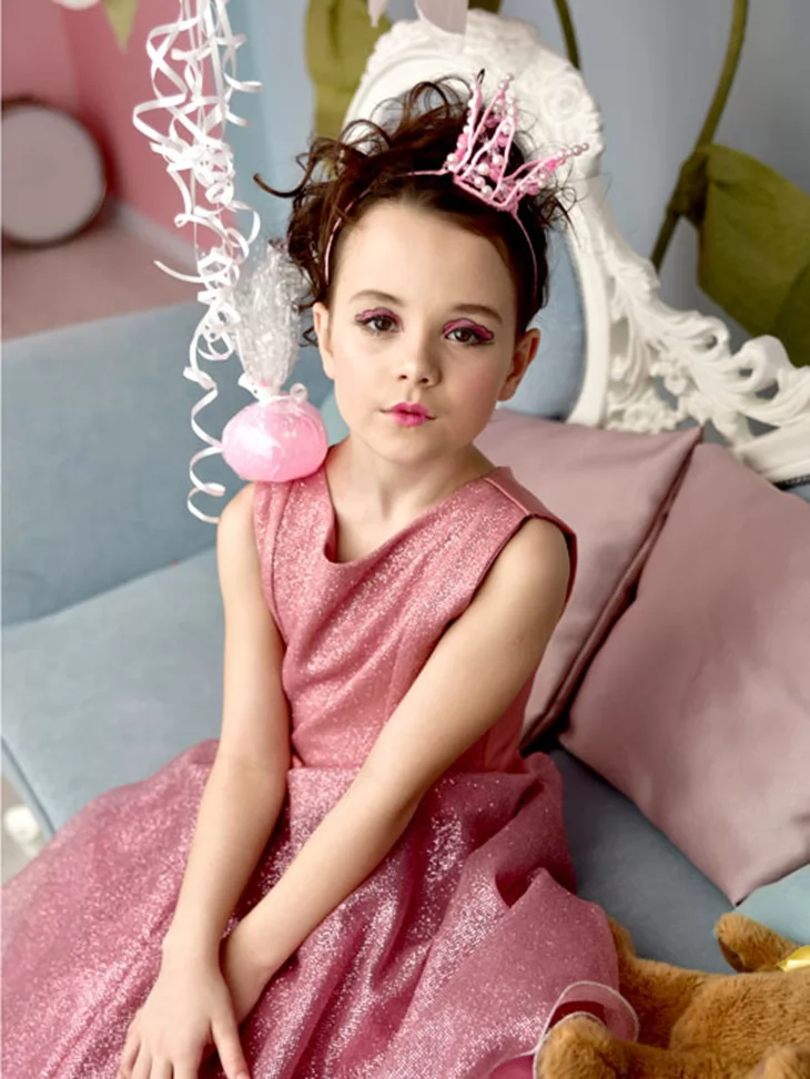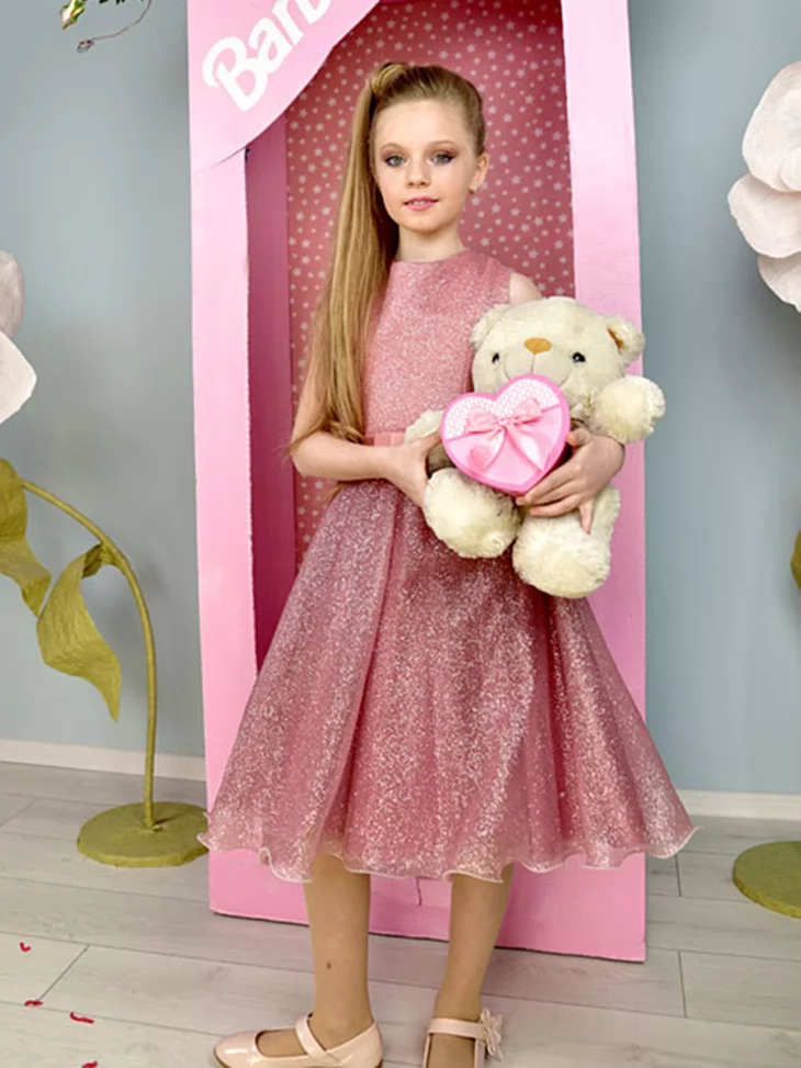 Стильний і ніжний образ у справжньому барбі-стилі, де поєднуються блиск, елегантність і дитяча граційність. Рожева сукня з делікатним сяйвом виглядає святково та витончено, створюючи образ маленької модниці. Такий варіант чудово підходить для оренди карнавальних костюмів на дні народження, тематичні вечірки та фотосесії.