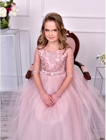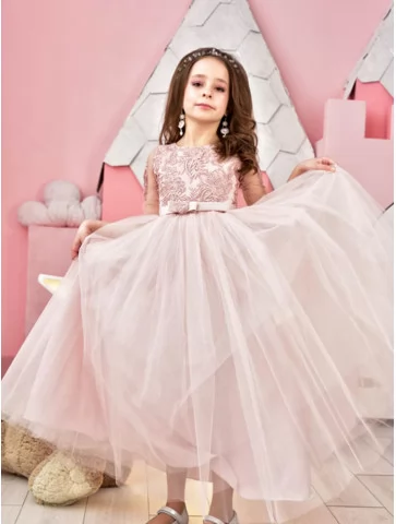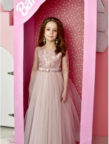 Ніжний та елегантний образ у стилі Барбі, що поєднує витонченість, легкість і справжню святкову атмосферу. Світло-рожева сукня з мереживним верхом і пишною фатіновою спідницею створює повітряний силует, який виглядає дуже ніжно та аристократично. Такий образ чудово підходить для оренди карнавальних костюмів на урочисті події, фотосесії та тематичні свята.