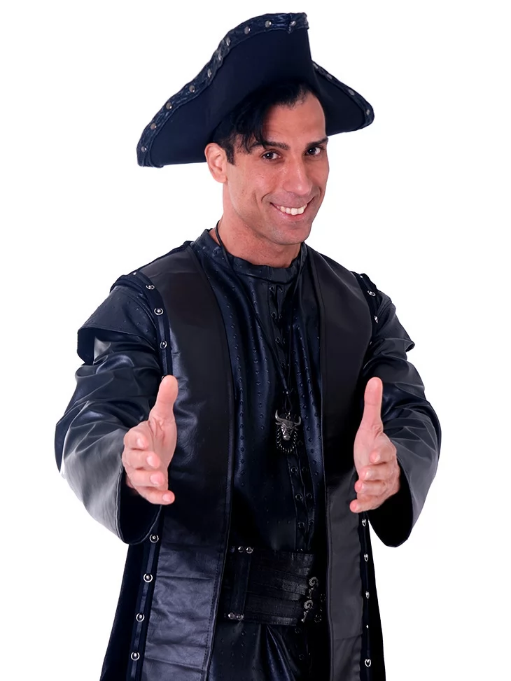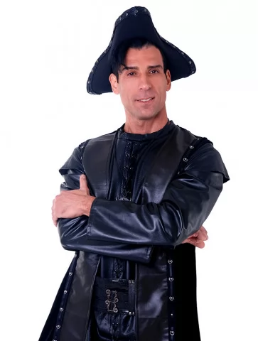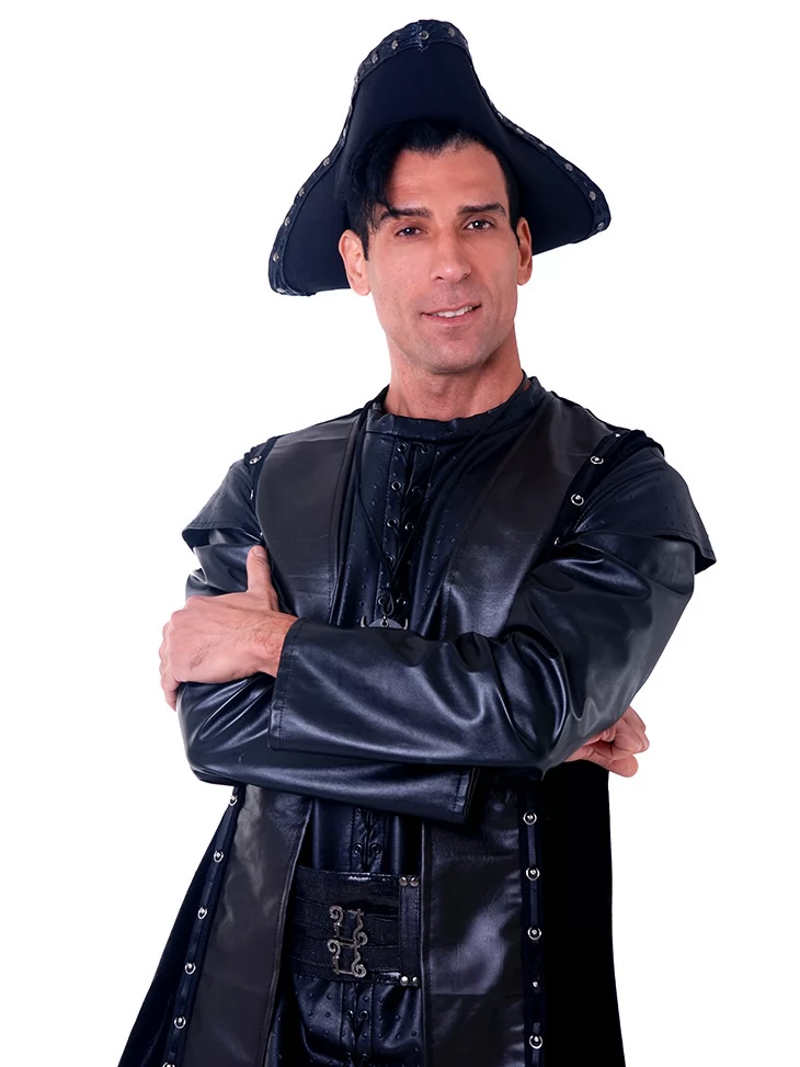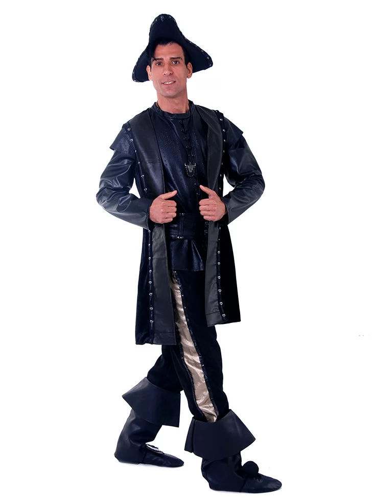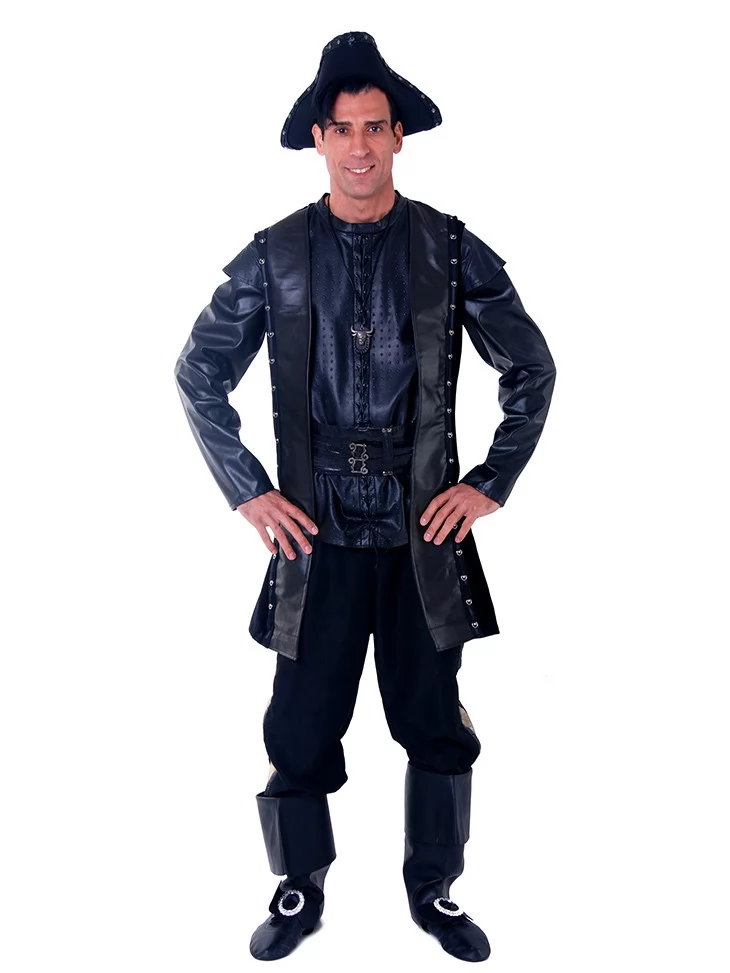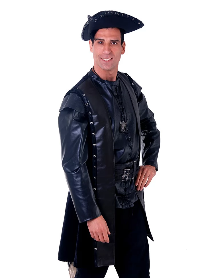 Костюм «Пірат Нічного Припливу» — це втілення сили, загадковості й класичної піратської харизми. Глибокий чорний колір, елементи з еко-шкіри та акценти на деталях створюють завершений образ героя, що з’являється з темряви на хвилях.
