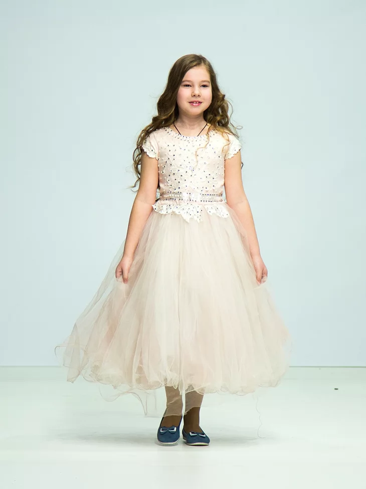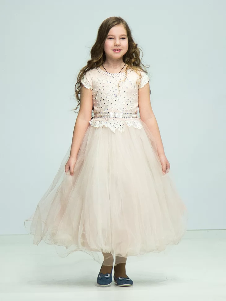 Молочна бальна сукня виглядає розкішно, ніжно та дуже фотогенічно — ідеальний варіант для створення чарівного святкового образу у прокат карнавальних костюмів.