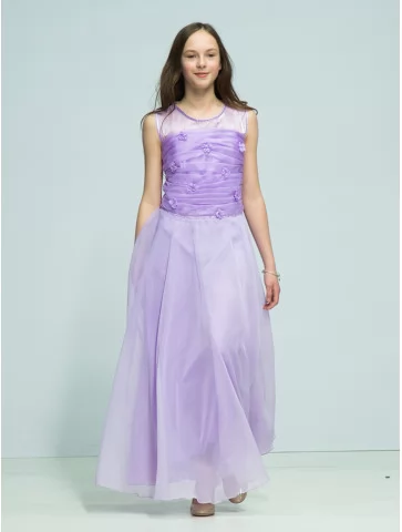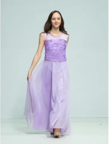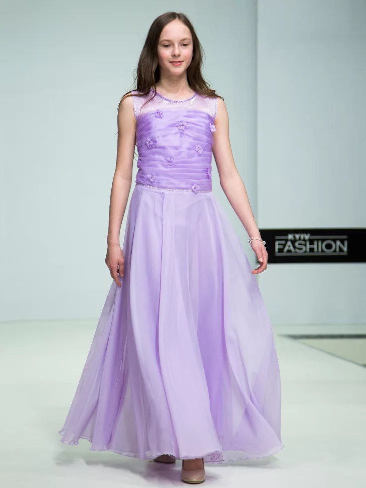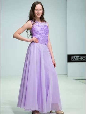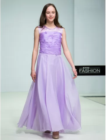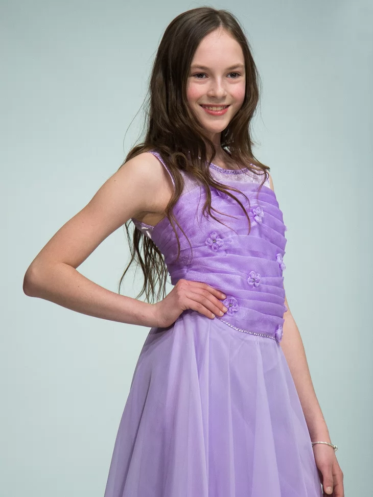 Легка, повітряна та дуже витончена сукня у м’якому бузковому відтінку створює образ справжньої юної принцеси. Цей варіант ідеально підходить для оренди карнавальних костюмів на свята, фотосесії, випускні та урочисті події. Напівпрозорий верх із декоративними квітковими елементами плавно переходить у довгу фатинову спідницю, яка красиво струменіє в русі та додає образу чарівності.