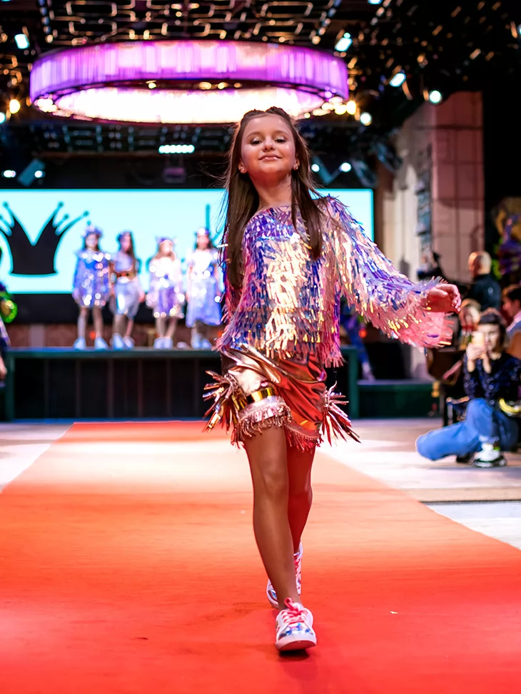 Яскравий подіумний образ із драйвом та ефектом справжнього шоу. Цей костюм із колекції «Голограма» створений для впевнених виходів на сцену. Сяючий топ із довгими голографічними рукавами переливається всіма відтінками неону, а металева мініспідниця з декоративними акцентами додає образу сміливості та характеру. При русі костюм виглядає особливо ефектно — кожен крок супроводжується блиском і динамікою. Чудовий вибір для оренди карнавальних костюмів на fashion-покази, конкурси та виступи.