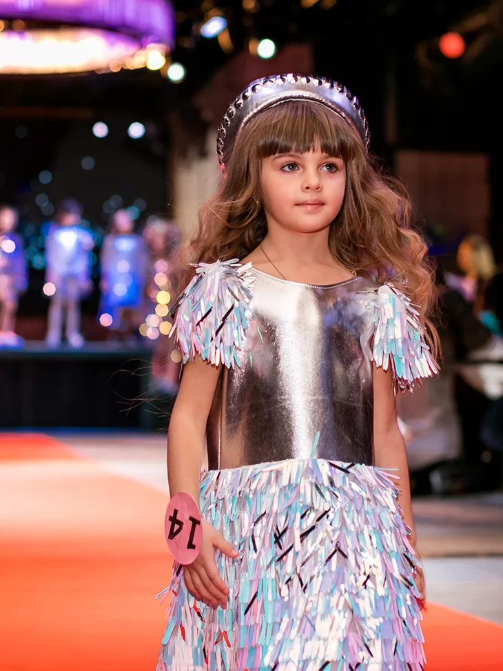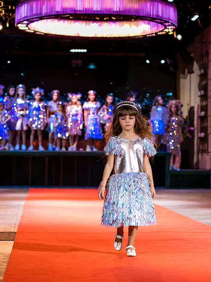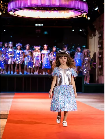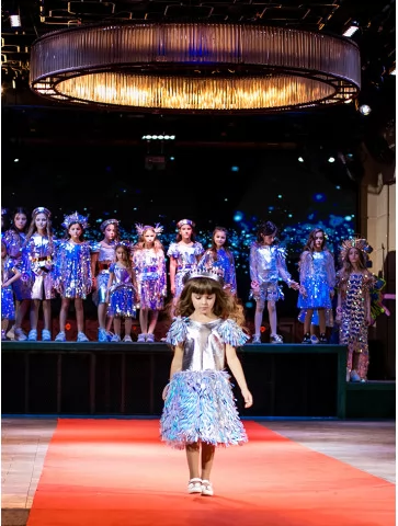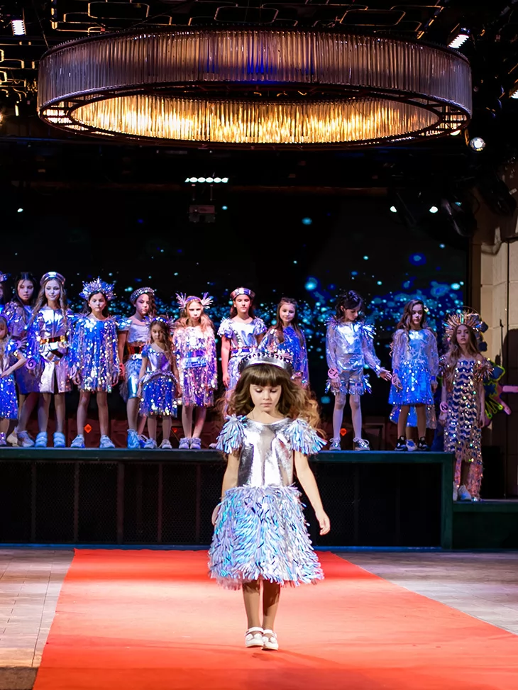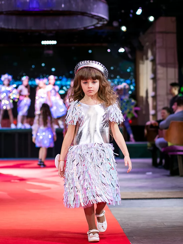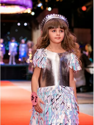 Яскравий, динамічний образ із ефектом сцени та сяйвом кожного руху. Цей костюм із колекції «Голограма» створений для ефектних виходів на подіум чи святкову сцену. Металізований срібний верх гармонійно поєднується зі спідницею з голографічними елементами, що красиво мерехтять при освітленні. Декоративні деталі на плечах додають об’єму та створюють відчуття руху, а стильний головний убір завершує цілісний fashion-образ. Ідеальний варіант для оренди карнавальних костюмів на покази, виступи та тематичні вечірки.
