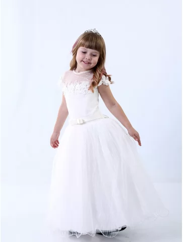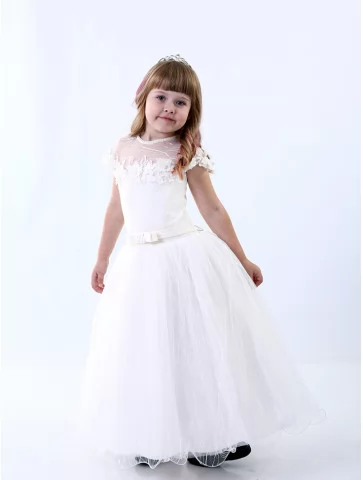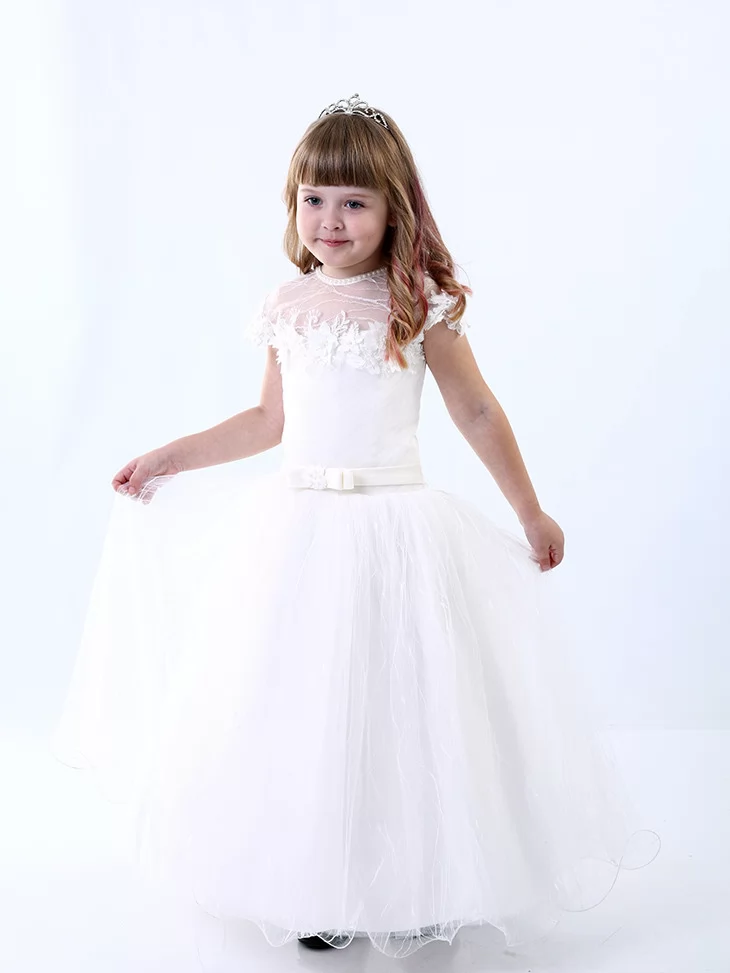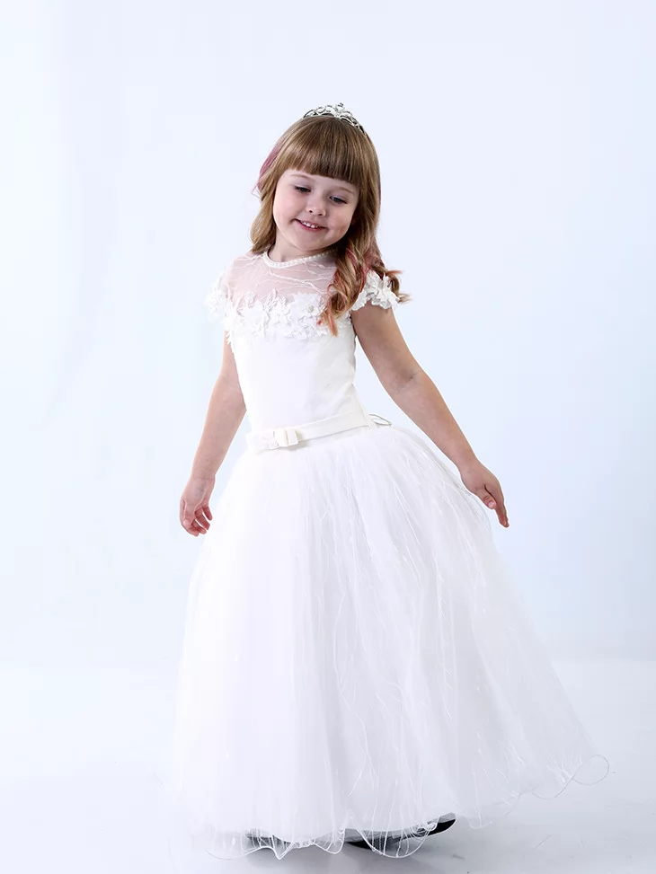 Ця молочна бальна сукня подарує дитині відчуття справжнього чарівного свята — обирайте її у прокаті карнавальних костюмів для ніжних і незабутніх моментів