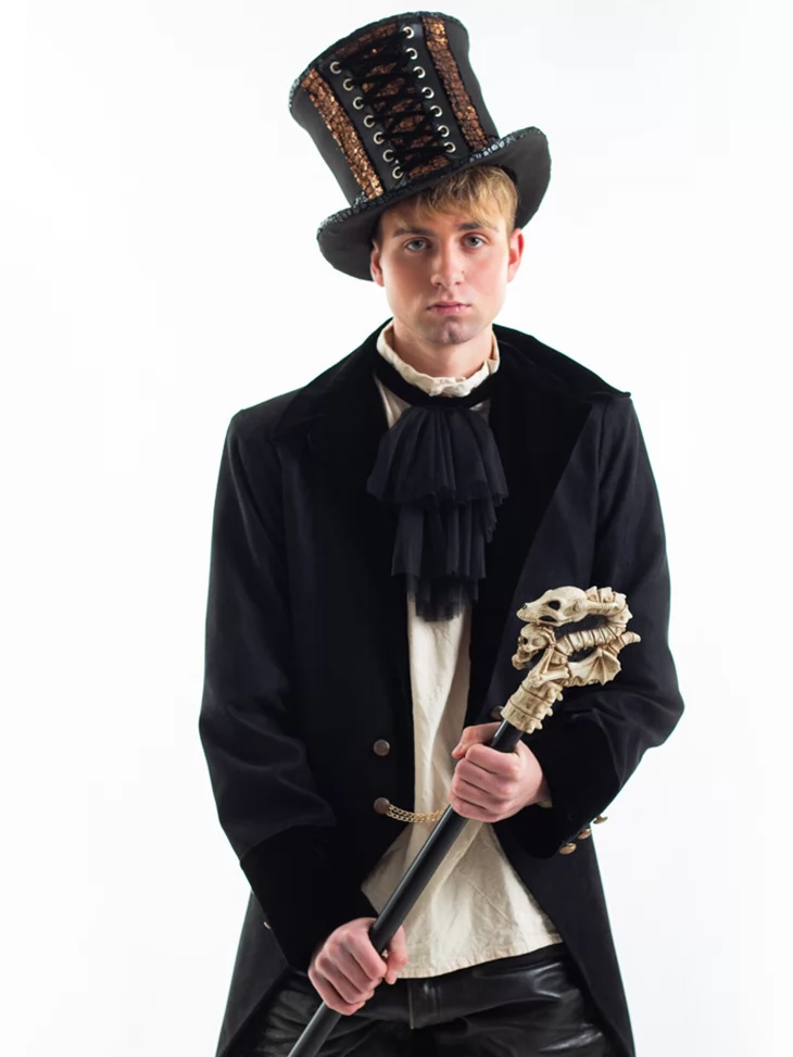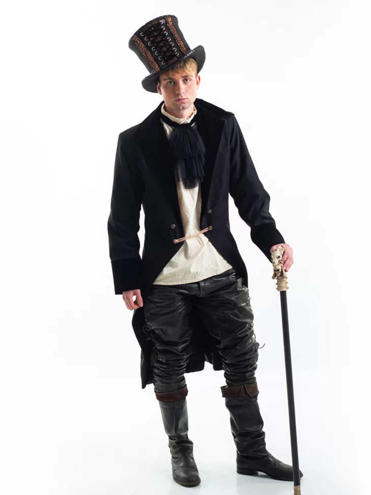 Карнавальний костюм "Чорний Годинникар" — це образ загадкового персонажа з фентезі або стімпанк-світу, який тримає у руках не лише тростину, а й контроль над часом. Сувора палітра, фактурні матеріали й характерні аксесуари надають образу аристократичної та містичної харизми. Ідеальний для того, хто хоче виглядати виразно та впевнено.