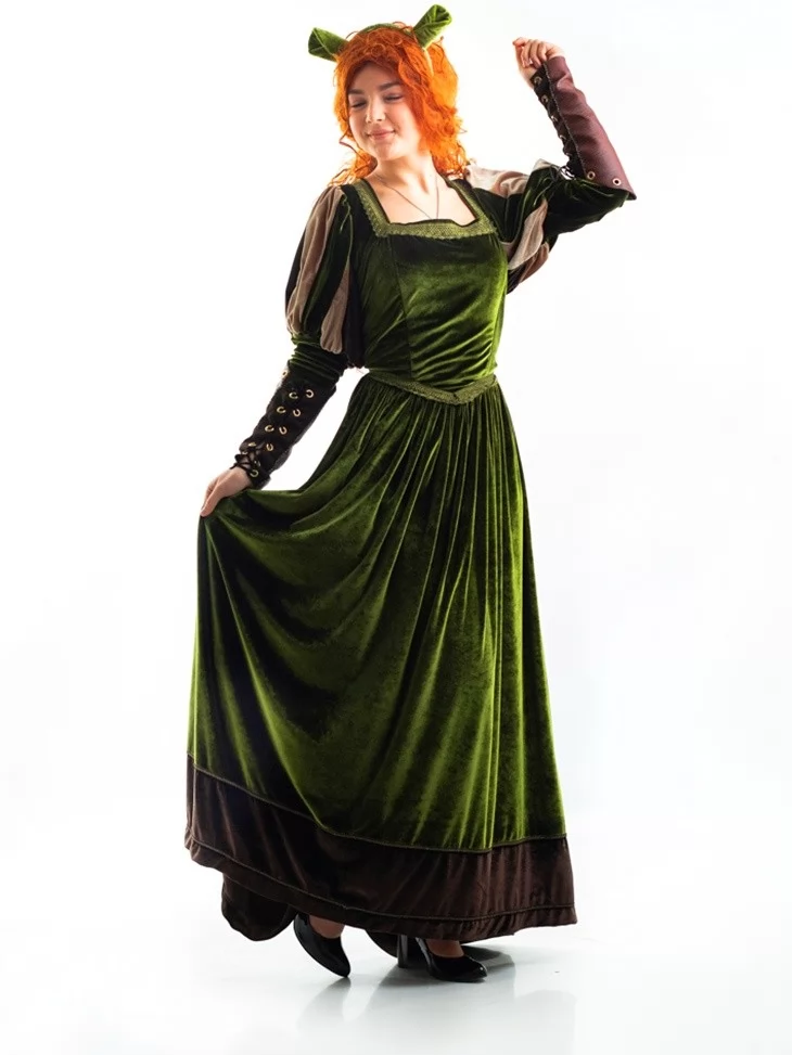 Костюм «Принцеса Фіона» — це образ, у якому поєднано середньовічну елегантність, казкову силу та гумор культової героїні з мультфільму «Шрек». Зелена оксамитова сукня в поєднанні з тематичними деталями створює яскравий впізнаваний образ, який не потребує пояснень. Завдяки сервісу оренда карнавальних костюмів, ви можете легко перевтілитись у сміливу й чарівну Фіону — хоч на балу, хоч у болоті!