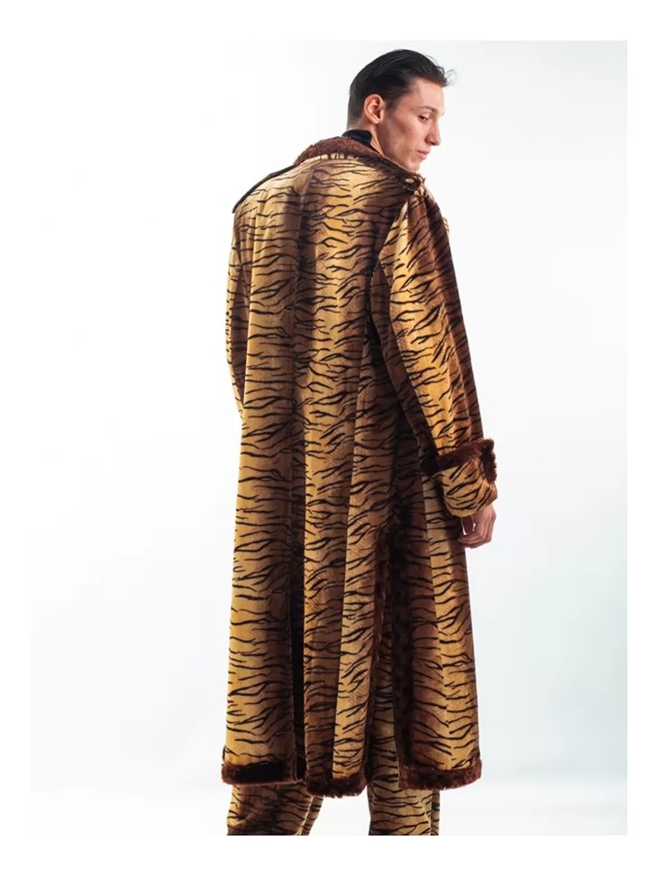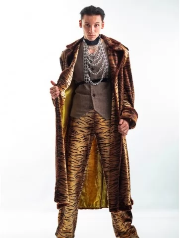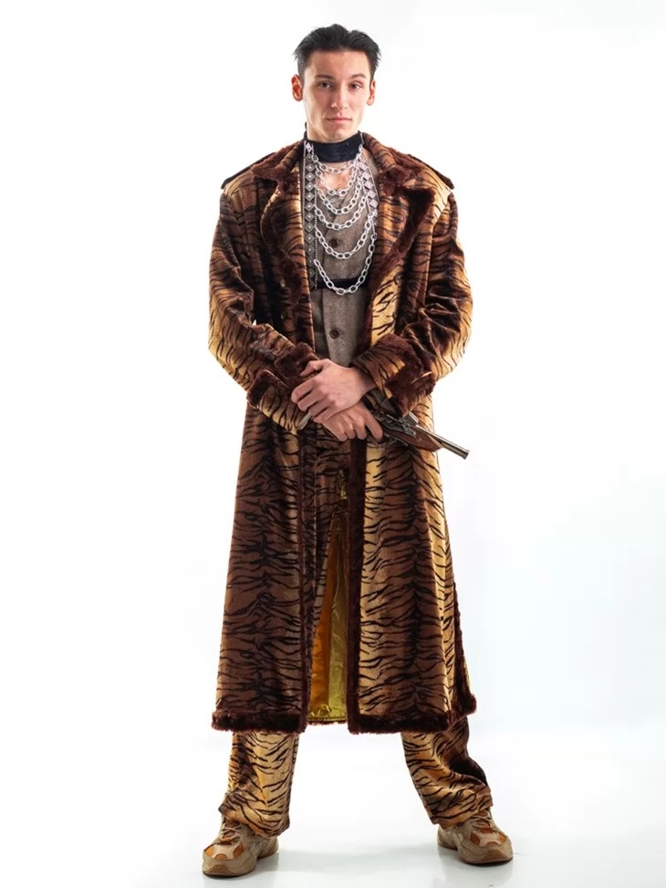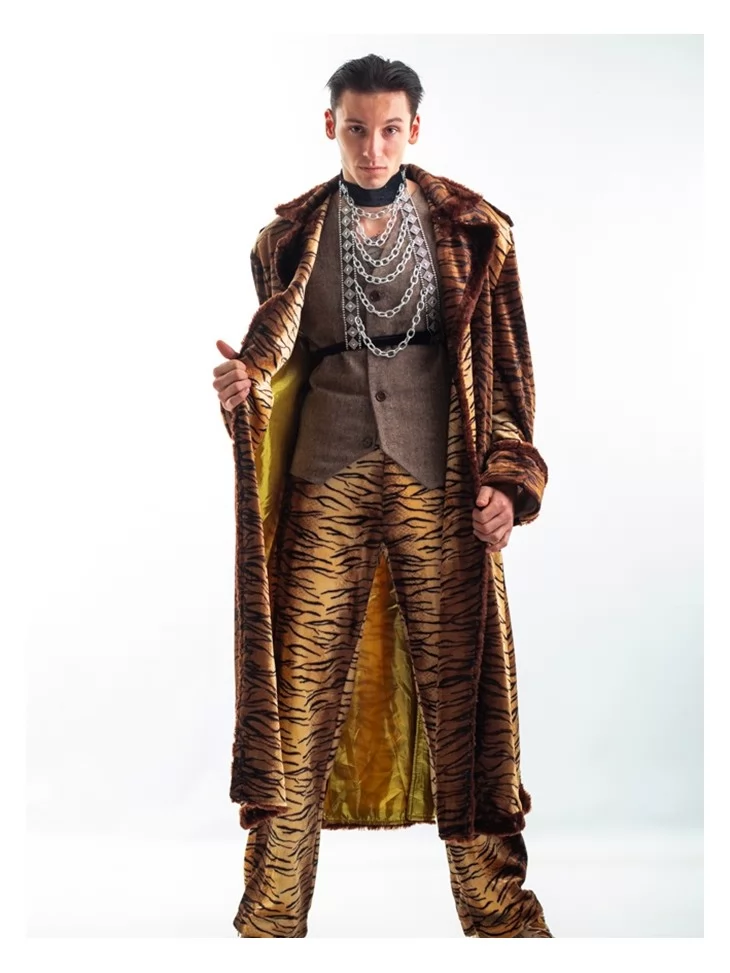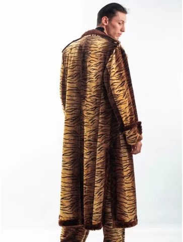 – довге пальто зі штучного хутра з малюнком тигра та золотистою підкладкою