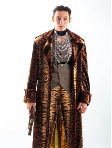 Костюм «Пустельний Хижак» створений для тих, хто не боїться дикої експресії. Поєднання текстурованого тигрового принта, металевих прикрас і безкомпромісного силуету — ідеальний вибір для екстравагантних виходів, фестивалів, тематичних вечірок та сміливих фотосесій.