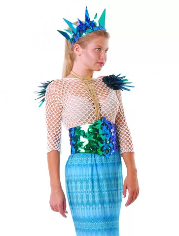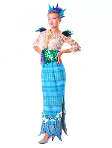 Костюм підкреслює силует і водночас зберігає легкість завдяки напівпрозорим фактурам і морській палітрі відтінків. Саме тому його часто обирають для прокат карнавальних костюмів, коли потрібен ефектний образ із впізнаваною морською історією.
