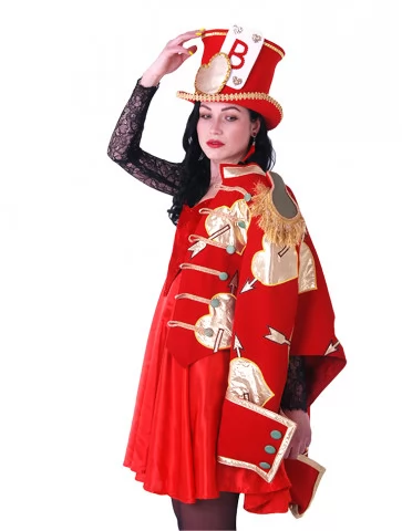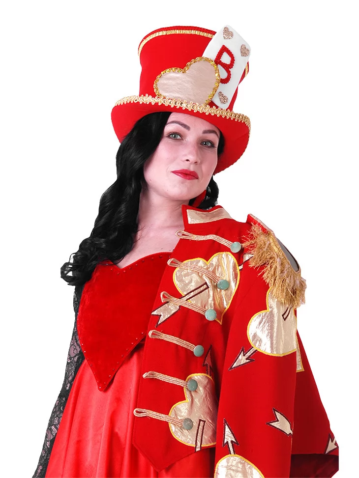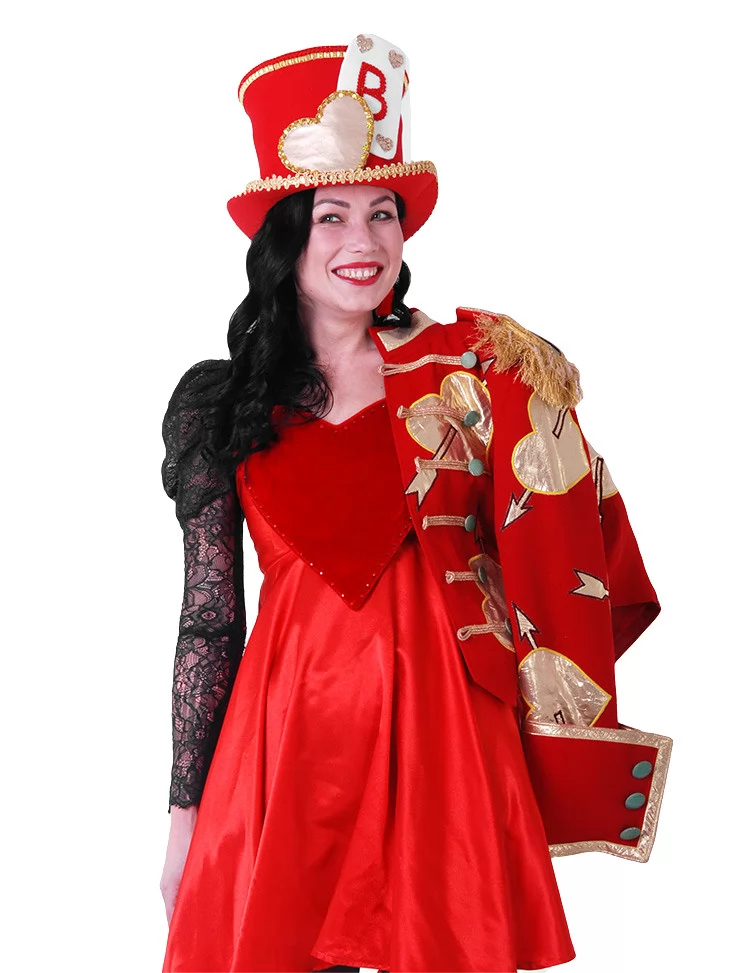 Костюм «Карткова Стражниця» — яскравий образ з нотками казкового божевілля, який поєднує розкіш червоного, магію символів карт і чарівність сценічного стилю. Цей костюм ідеально підійде для ролі Валета або іншого персонажа з чарівного карткового світу. Вбрання складається з сукні з яскраво-червоним вехом у формі серця, легкої спідниці, мереживного рукава та розкішного жакету з декоративними елементами у вигляді стріл. Образ завершений тематичним капелюхом, що підкреслює казковий характер. Цей образ стане незабутнім акцентом на святі або виступі. Якщо ви шукаєте щось дійсно унікальне — скористайтесь сервісом оренда карнавальних костюмів, щоб створити яскравий вихід у стилі чарівної казки.