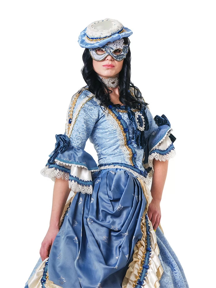 Прокат карнавальних костюмів такого стилю — чудовий спосіб зануритися у світ магії, краси та святкового блиску венеціанського карнавалу.