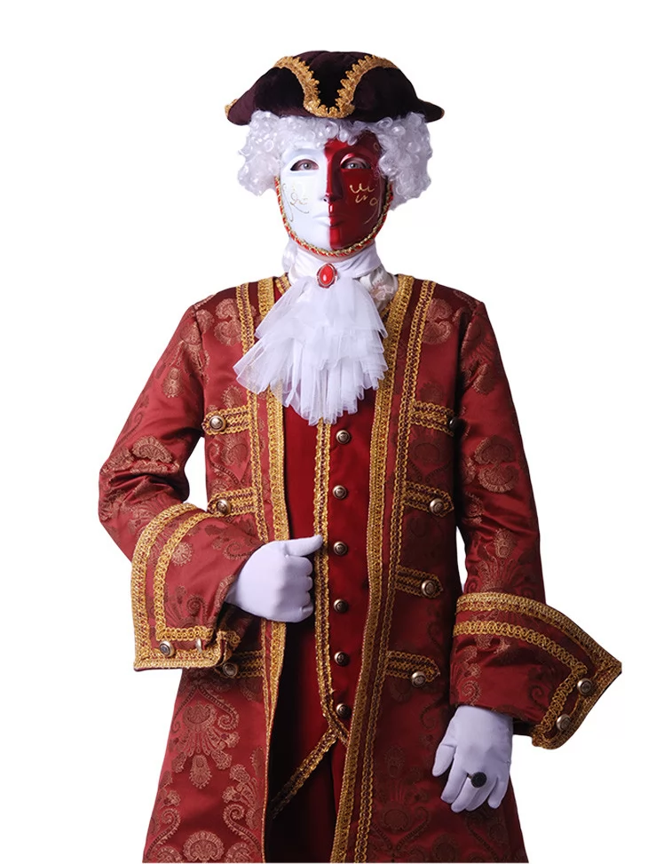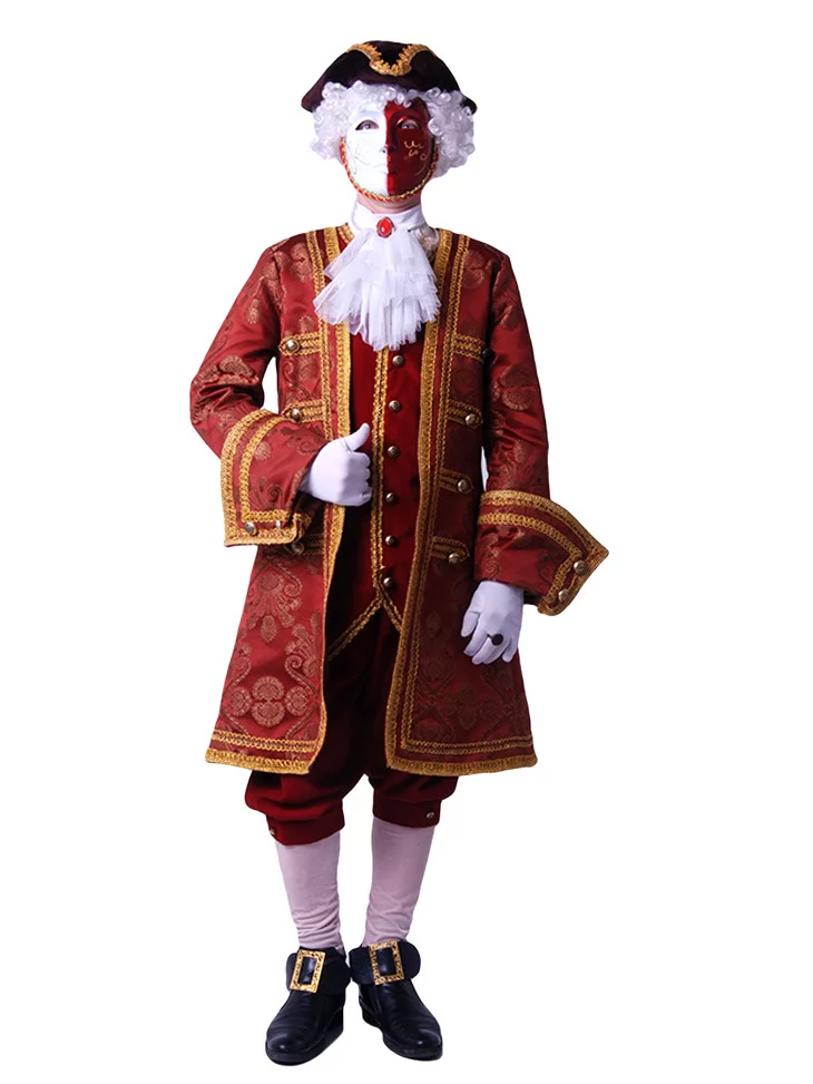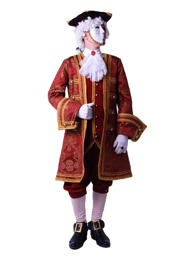 Цей карнавальний костюм «Червоний Придворний » втілює атмосферу XVIII століття — епохи маскарадів, розкоші та інтриг. Благородні відтінки бордо, золоте оздоблення та традиційні елементи костюма створюють ефектний образ для святкового виходу. Вдалий вибір для тих, хто шукає оренду карнавальних костюмів у стилі бароко.