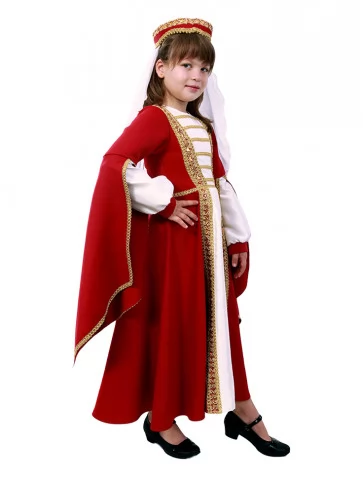 Стриманий, шляхетний і дуже автентичний образ, що передає красу та гідність грузинської культури.Поєднання насиченого червоного кольору з білим вбранням і золотим оздобленням створює відчуття урочистості, спокою та внутрішньої сили. Це вдалий вибір для оренди карнавальних костюмів на виступи, тематичні заходи та культурні події.