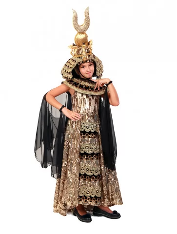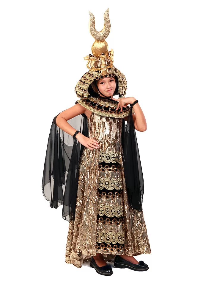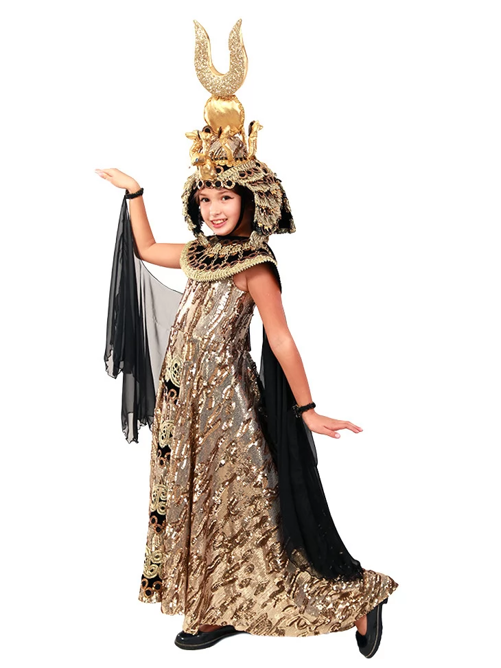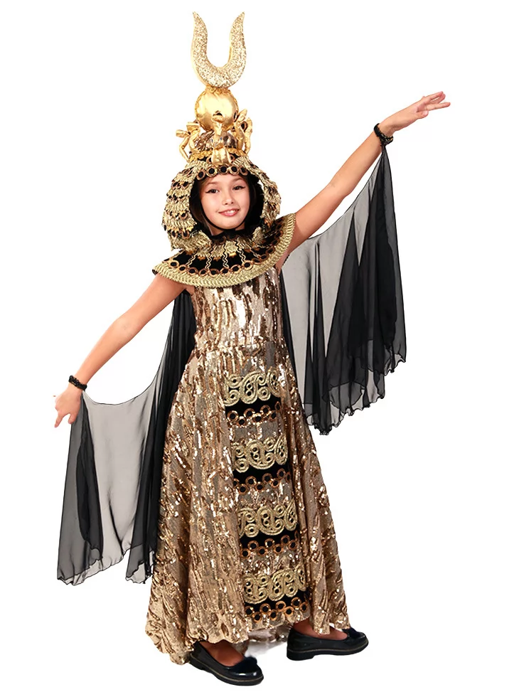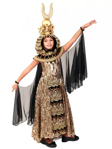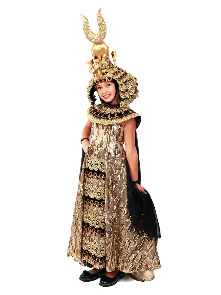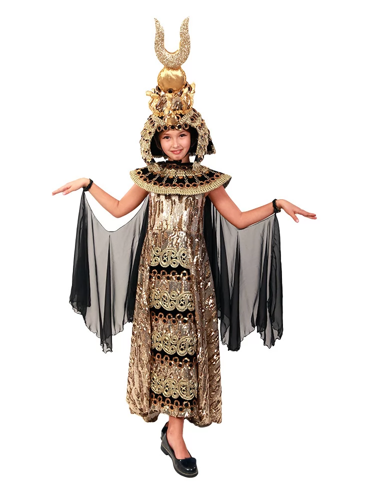 Костюм Єгипетської Богині Золотого Місяця — це образ, який одразу переносить у світ легенд, храмів і стародавньої магії. Образ чудово вписується у категорію східних та єгипетських персонажів і користується популярністю у прокат карнавальних костюмів для виступів, свят і фотосесій.