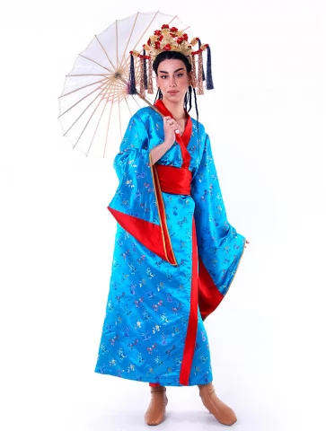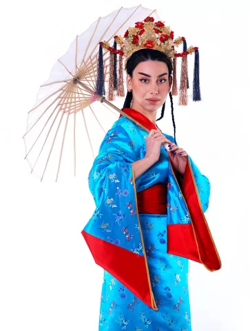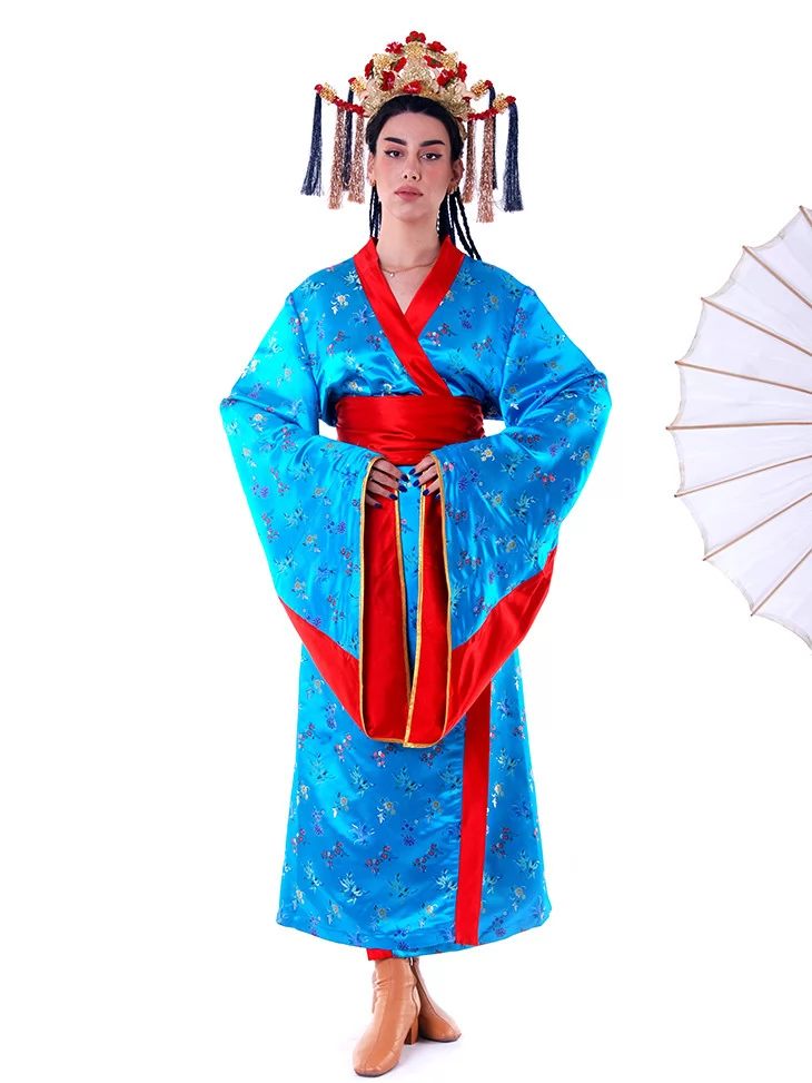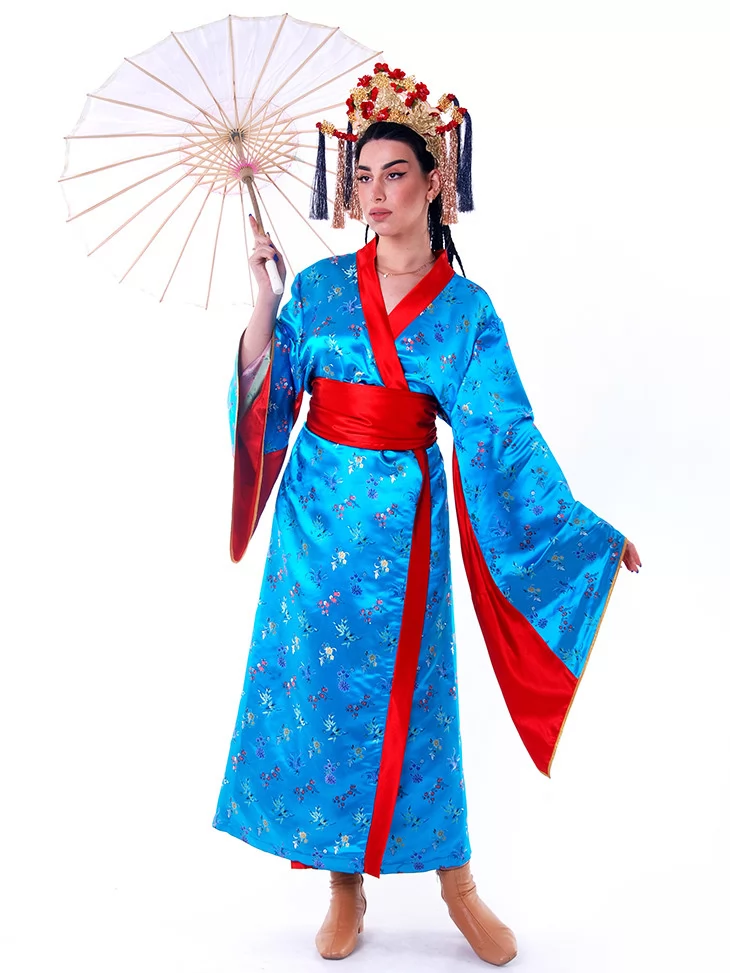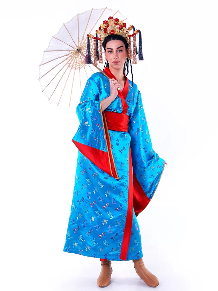 Костюм «Китайська Імператриця у Блакиті» переносить вас у часи китайських імператорських палаців, де панує витонченість, символізм і таємнича краса. Яскраво-блакитне кімоно з червоним оздобленням вишукано поєднується з парасолькою та пишним головним убором, створюючи образ, який вражає з першого погляду. Завдяки послузі оренда карнавальних костюмів, ви зможете легко втілити цей незабутній стиль для фотосесій, шоу-програм або святкових заходів.