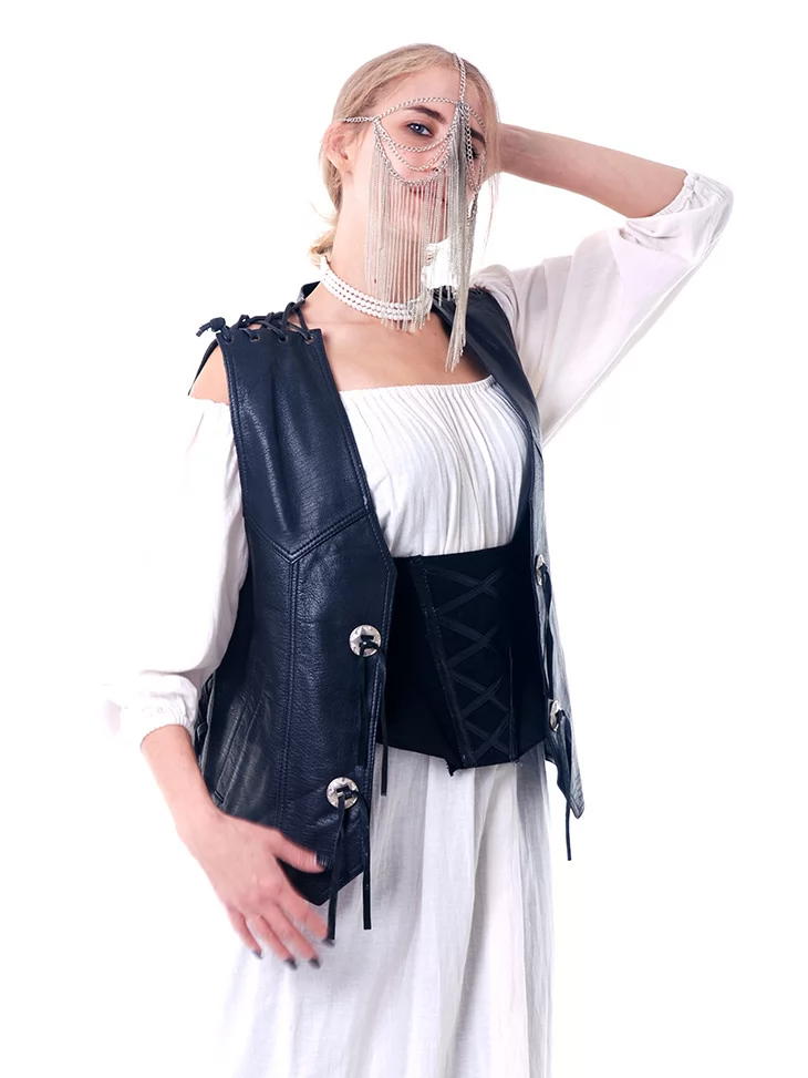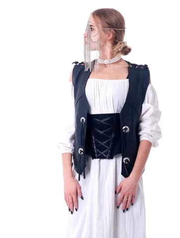 – жилет із еко-шкіри з декоративною шнурівкою та металевими ґудзиками