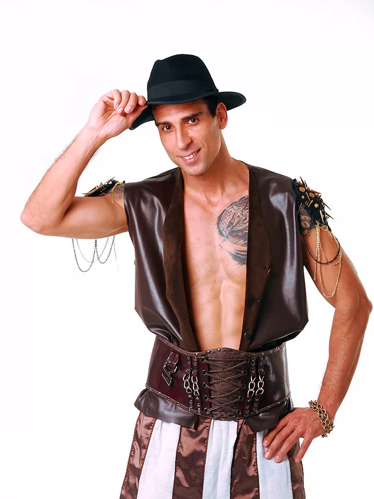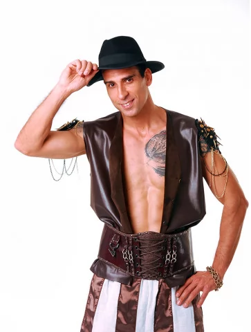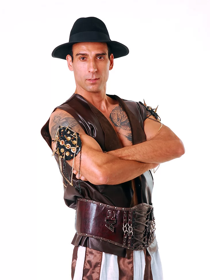Карнавальний костюм «Циган Розбійник» — це загадковий і харизматичний образ розбійника кочового циганського табору. Такий костюм додасть вогню будь-якому святу, фотосесії чи театралізованому дійству. Він створений для тих, хто шукає нетипові образи в оренді карнавальних костюмів.