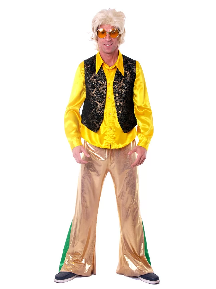 Костюм «Золотий Ретро-Денсер» — це стиль, натхненний епохою диско 70-х. Образ вирізняється яскравим кольором, блиском та святковим настроєм. Ідеальний вибір для тематичних вечірок, сценічних виступів, шоу-програм, новорічних свят або фотосесій. Завдяки послузі оренда карнавальних костюмів образ доступний кожному, хто хоче бути у центрі уваги.