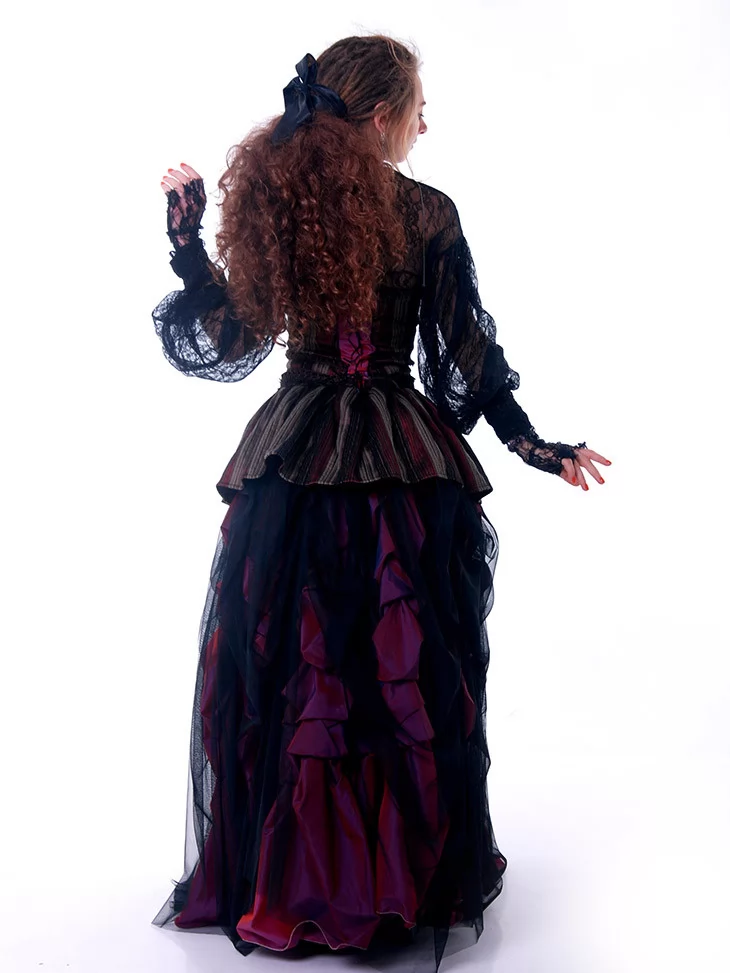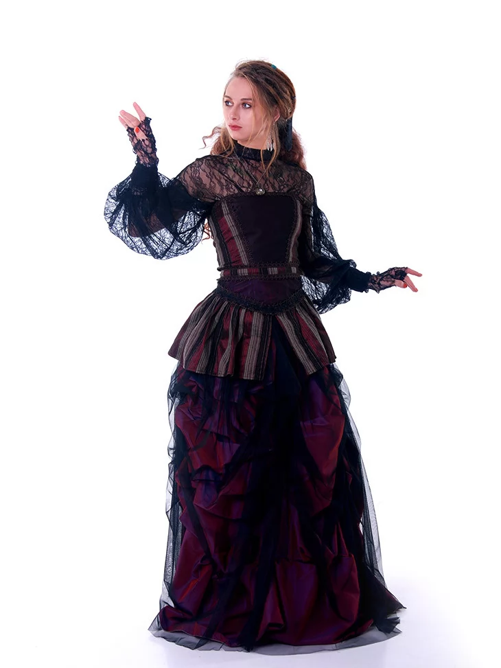 Уособлення загадкової епохи, де парові машини і мереживна елегантність створюють світ альтернативної реальності. Костюм «Леді Ефірного Віку» — витончений образ, натхненний вікторіанською модою з темним романтизмом. Ідеально підходить для містичних героїнь, наукових леді або сценічних образів із присмаком ретро-фентезі.