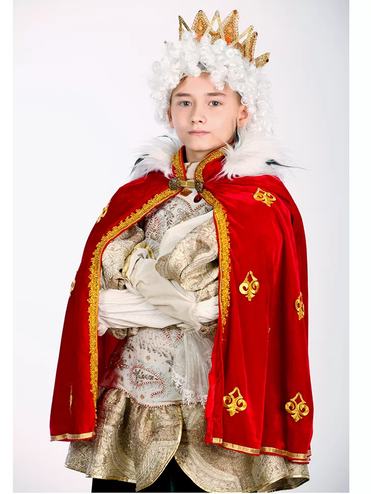 Цей карнавальний костюм Короля — втілення благородства, величі та вишуканого смаку. Ідеально підходить для підлітків, які готуються до виступу, балу чи урочистого свята. Прокат карнавальних костюмів — вигідне рішення для урочистих образів.