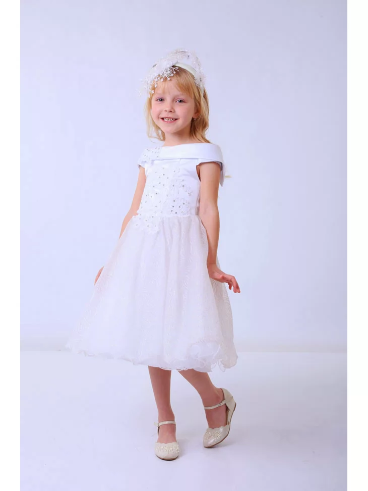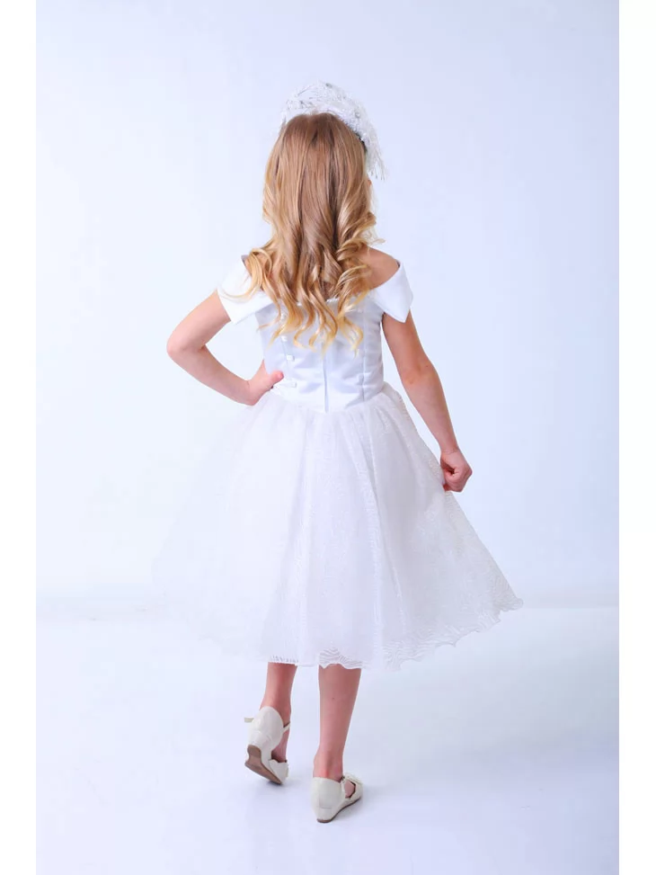 Ніжний та сяйливий образ, ніби створений із зимового світла й першого морозного ранку. Лаконічний верх із делікатним декором плавно переходить у пишну спідницю з легкого фатину, що красиво коливається під час руху. Це витончений варіант для оренди карнавальних костюмів на новорічні ранки, святкові вистави та чарівні фотосесії. М’яка лінія плечей додає образу елегантності, а світлий блиск тканини створює ефект справжньої крижаної казки.