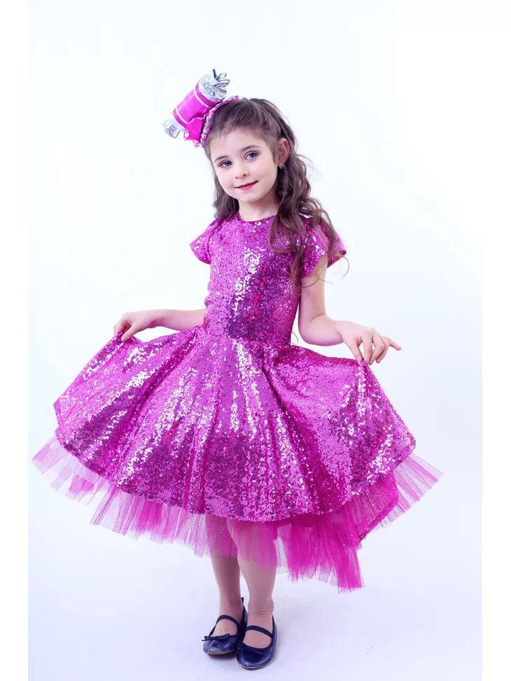 Яскравий, солодкий та неймовірно сяючий образ, ніби маленька карамель у святковій обгортці, що мерехтить кожним рухом. Насичена малинова сукня, повністю оздоблена паєтками, створює ефект справжнього святкового сяйва. Пишна фатінова підкладка додає об’єму та легкості, а декоративний головний убір у вигляді цукерки робить образ ще більш впізнаваним та веселим. Ідеальний вибір для оренди карнавальних костюмів на новорічні ранки, тематичні вечірки та яскраві фотосесії.