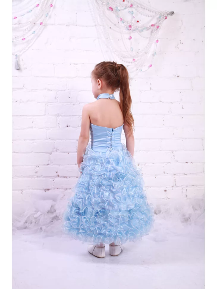 Ніжна блакитна сукня з повітряною багатошаровою спідницею створює образ маленької принцеси з казкового балу.
