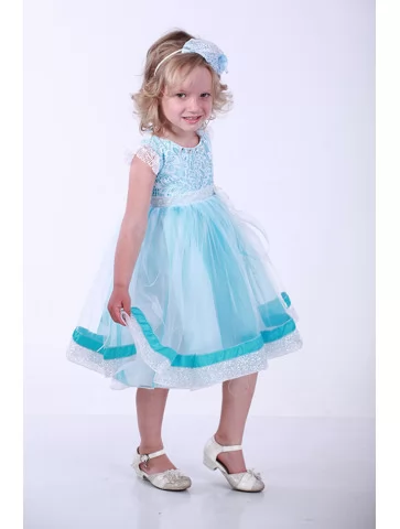 Ця блакитна сукня наповнює образ ніжністю, святковістю та дитячою чарівністю. Підійде для прокату карнавальних костюмів, коли хочеться створити ніжний святковий лук без купівлі сукні.