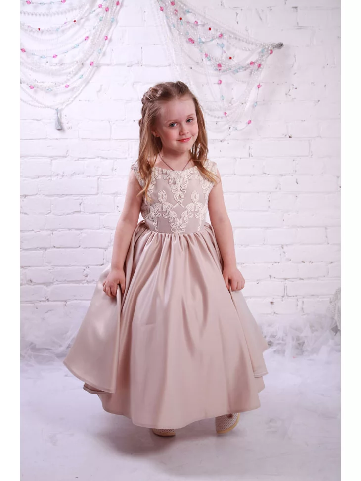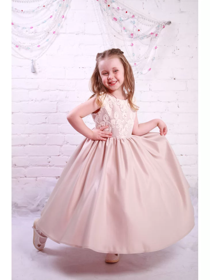 Сукня бальна у пудровому відтінку створює відчуття ніжності, спокою та святкової гармонії й стане прекрасним вибором для прокату карнавальних костюмів на будь-яку урочисту подію.