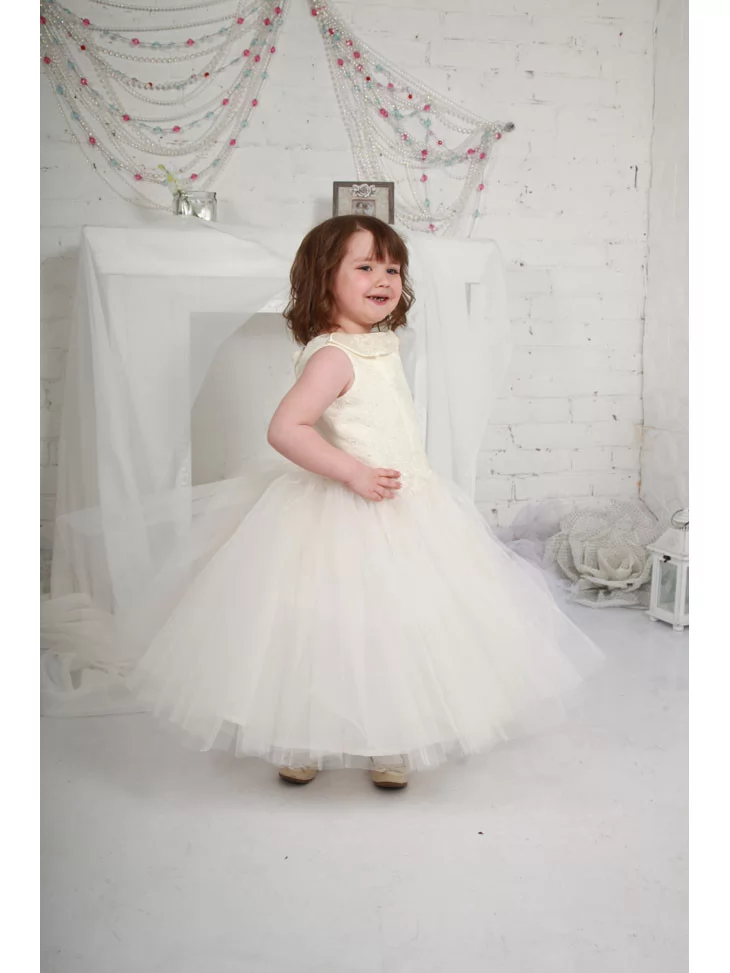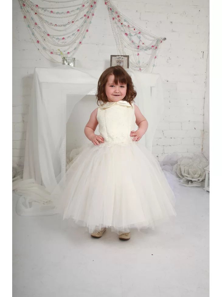 Ніжний і дуже теплий образ у молочному відтінку, який виглядає м’яко, святково та по-дитячому чарівно. Ця молочна сукня створена для особливих моментів — коли хочеться легкості, світла й акуратної урочистості. Лаконічний ліф із делікатною фактурою красиво поєднується з пишною фатиновою спідницею, яка надає образу об’єму й казковості. Чудовий вибір для оренди карнавальних костюмів на ранки, фотосесії, дні народження та сімейні свята.