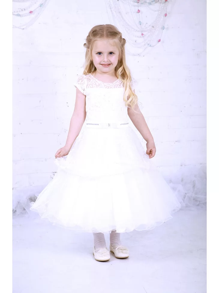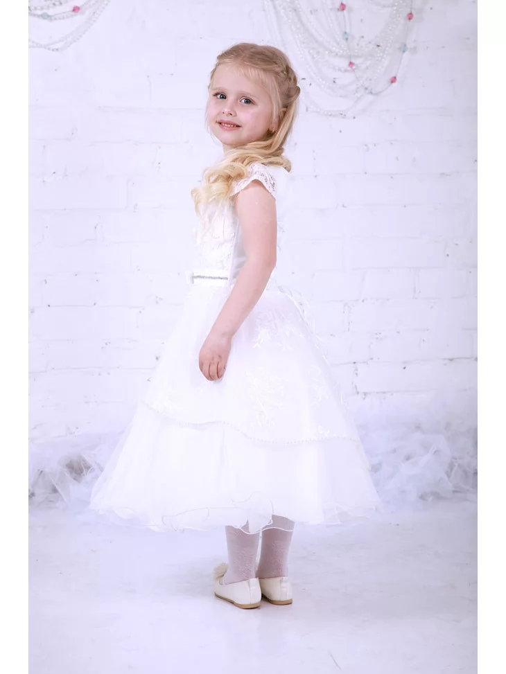 Світлий, повітряний образ, що виглядає мов з казкового сну — легкий, чистий і по-справжньому урочистий. Мереживний верх додає сукні витонченості, а багатошарова фатинова спідниця створює ніжний об’єм і рухливий силует. У такому вбранні дитина виглядає немов маленька принцеса на балу. Чудовий варіант для оренди карнавальних костюмів на ранки, фотосесії та святкові події.