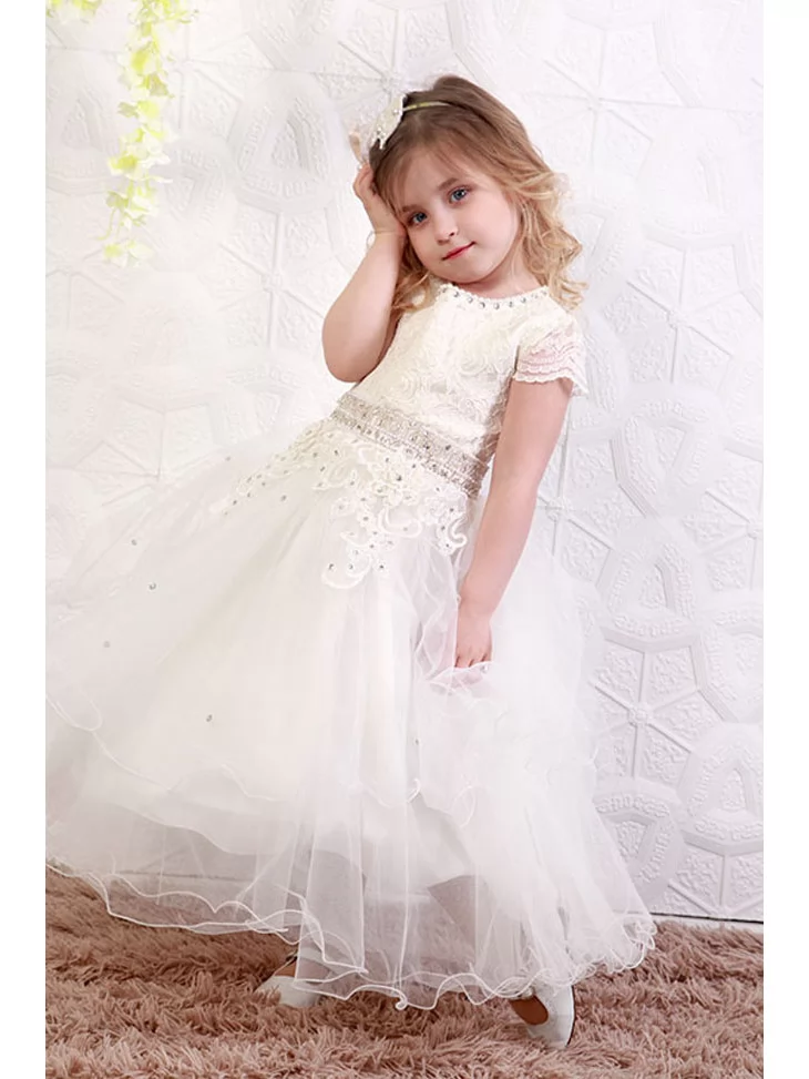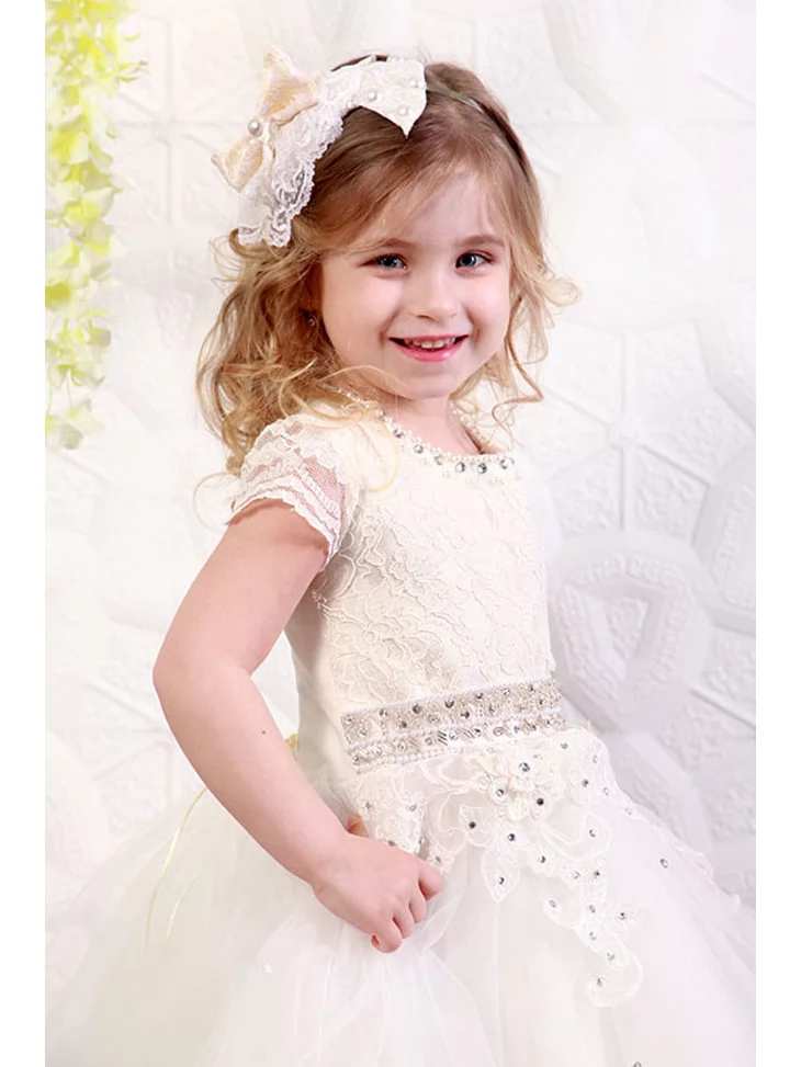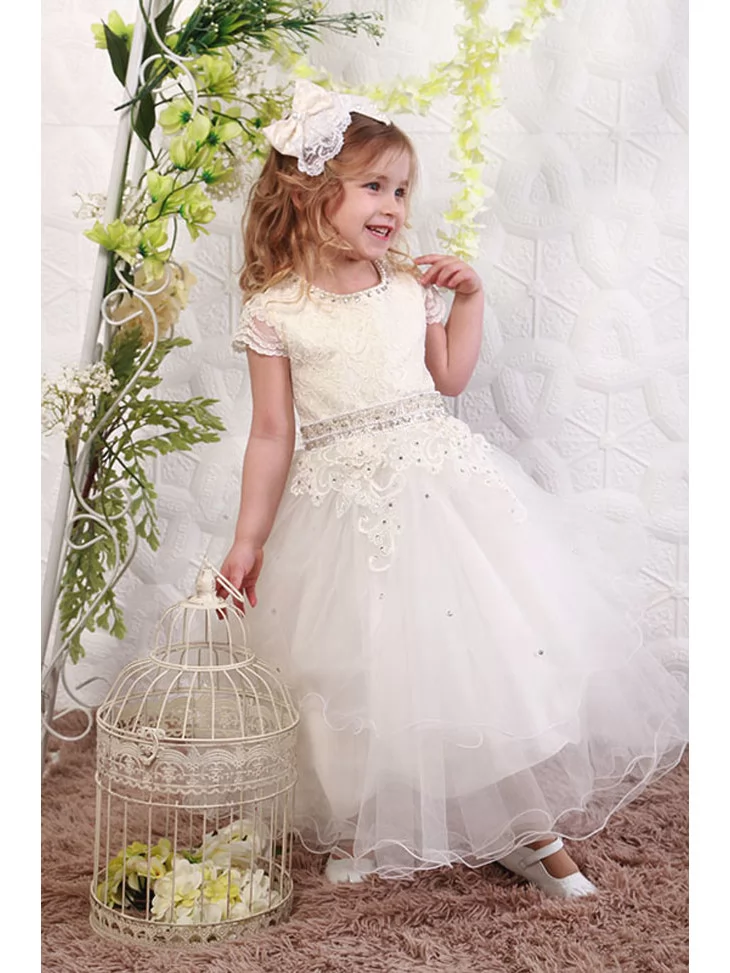 Сукня святкова молочна з мереживним ліфом і фатиновою спідницею