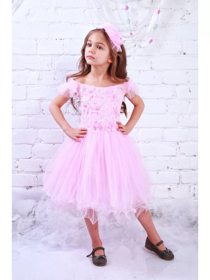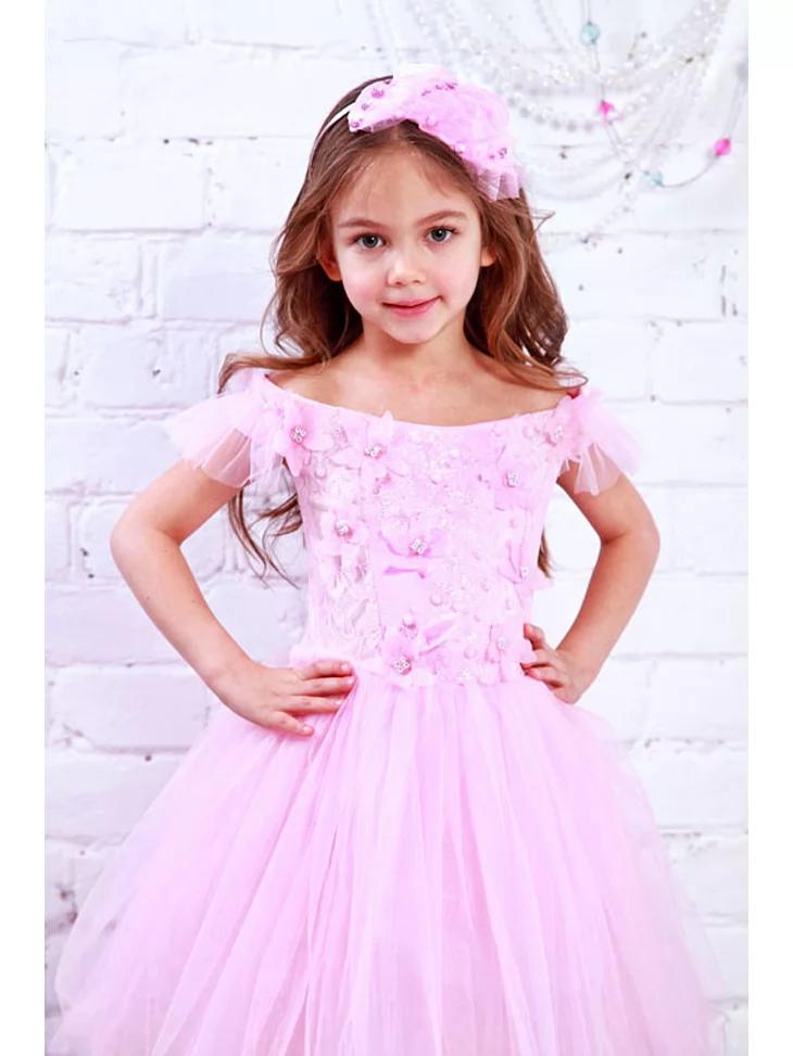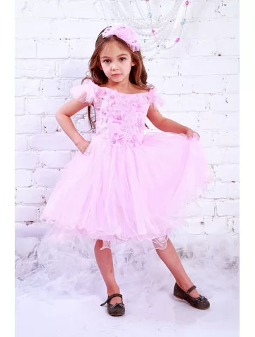 Сукня бальна Рожева Повітряна Казка з квітковим декором