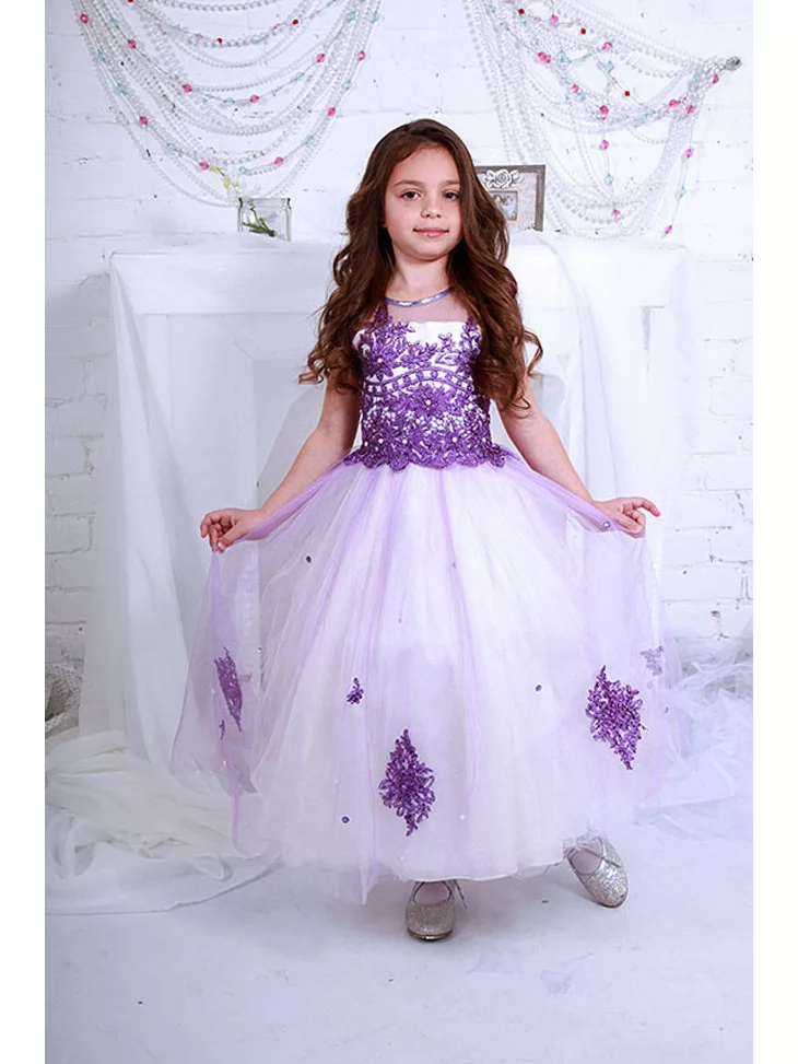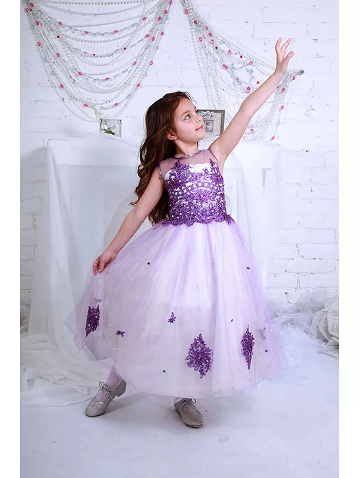 Ніжний святковий образ із казковим настроєм, який одразу привертає увагу своєю легкістю та витонченістю. Лілова сукня з ажурним мереживним ліфом і повітряною фатиновою спідницею створює ефект справжньої принцеси. Декоративні вишиті елементи на спідниці додають глибини образу та святкового блиску. Вона чудово підійде для оренди карнавальних костюмів на ранки, фотосесії, дні народження та урочисті події.