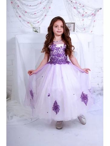 Сукня лілова з мереживним верхом і фатиновою спідницею стане ніжним акцентом свята у прокаті карнавальних костюмів та подарує справжнє відчуття чарівності.