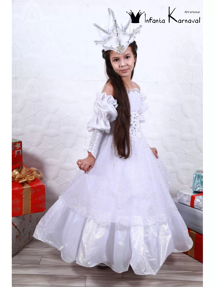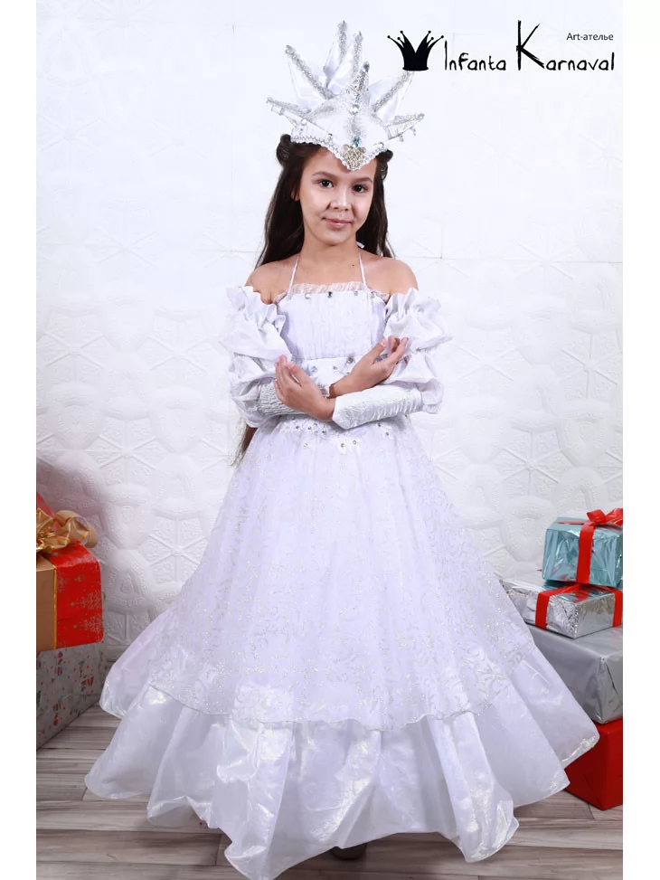 Цей образ перетворює дитину на справжню королеву зимового королівства — обирайте його у прокаті карнавальних костюмів, щоб створити магію свята та незабутні емоції