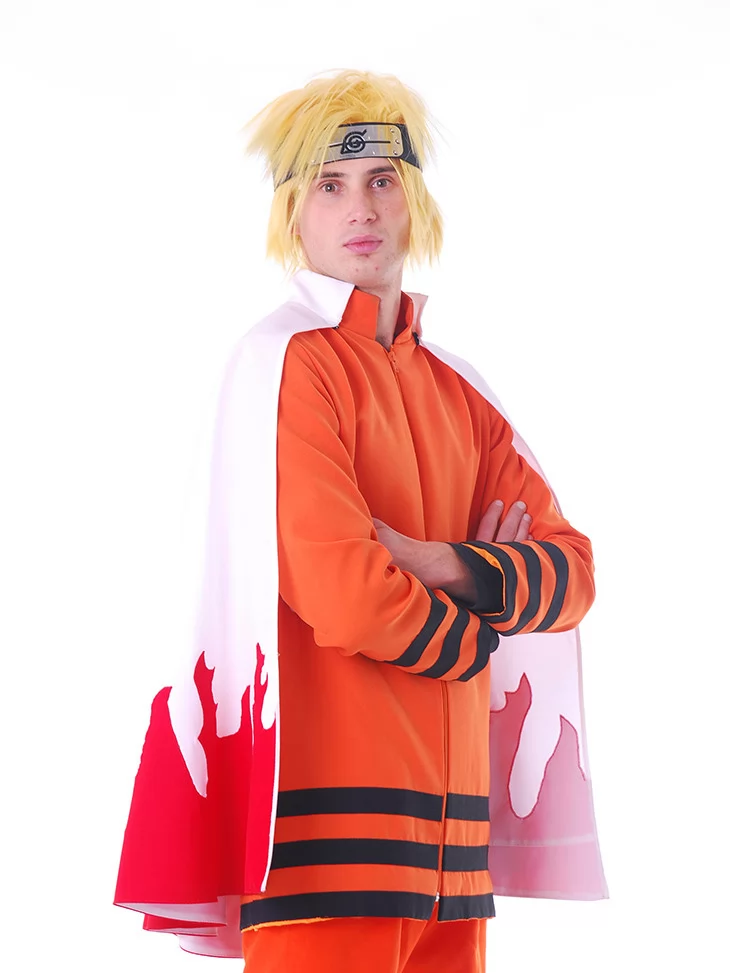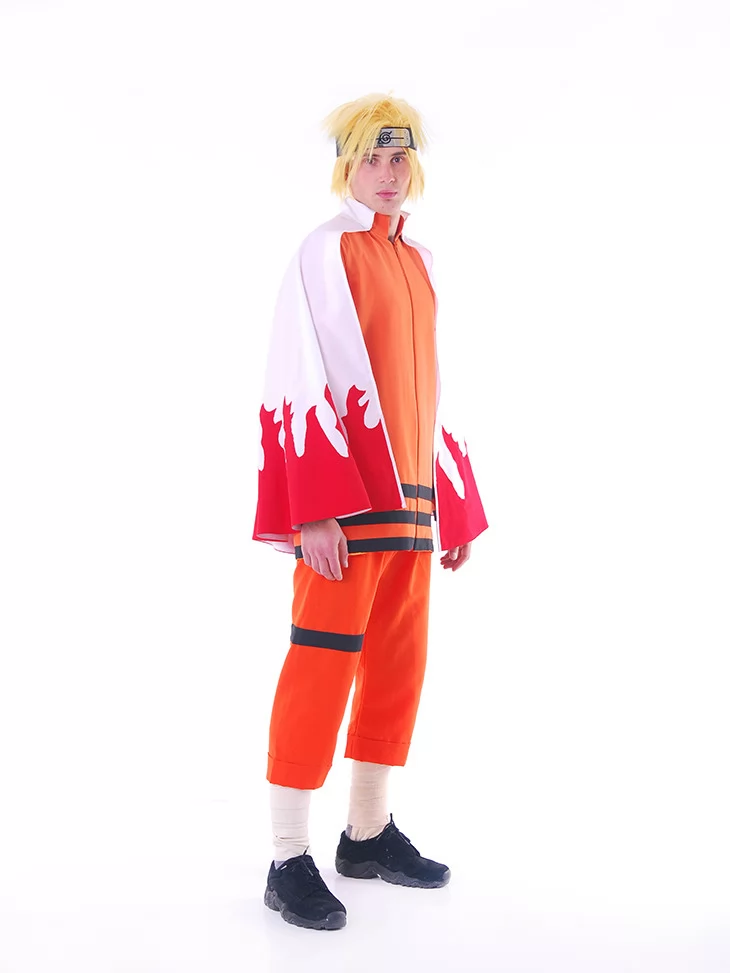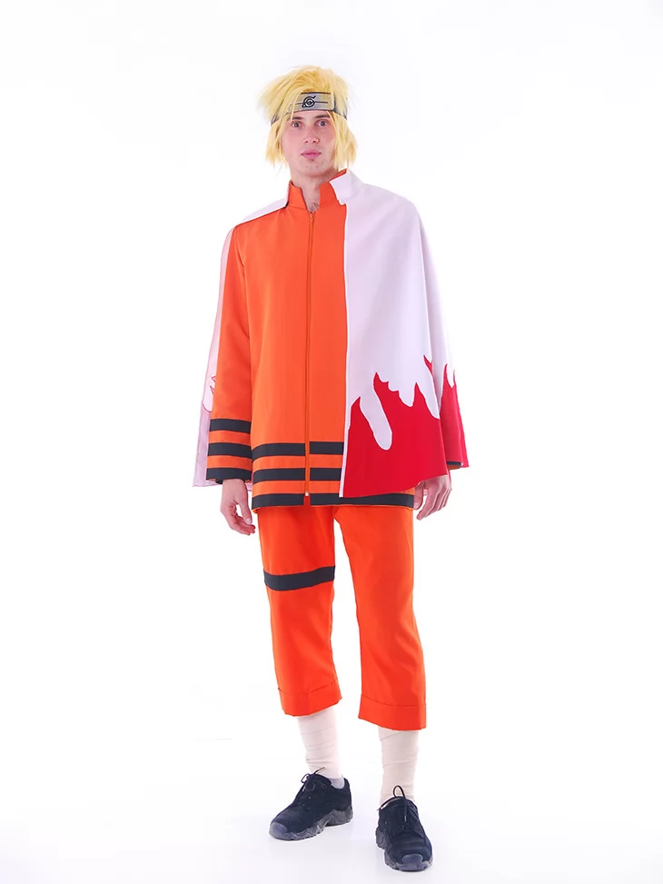 – яскраво-помаранчевий костюм з чорними акцентами — точна стилізація під бойовий костюм Наруто