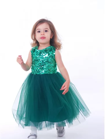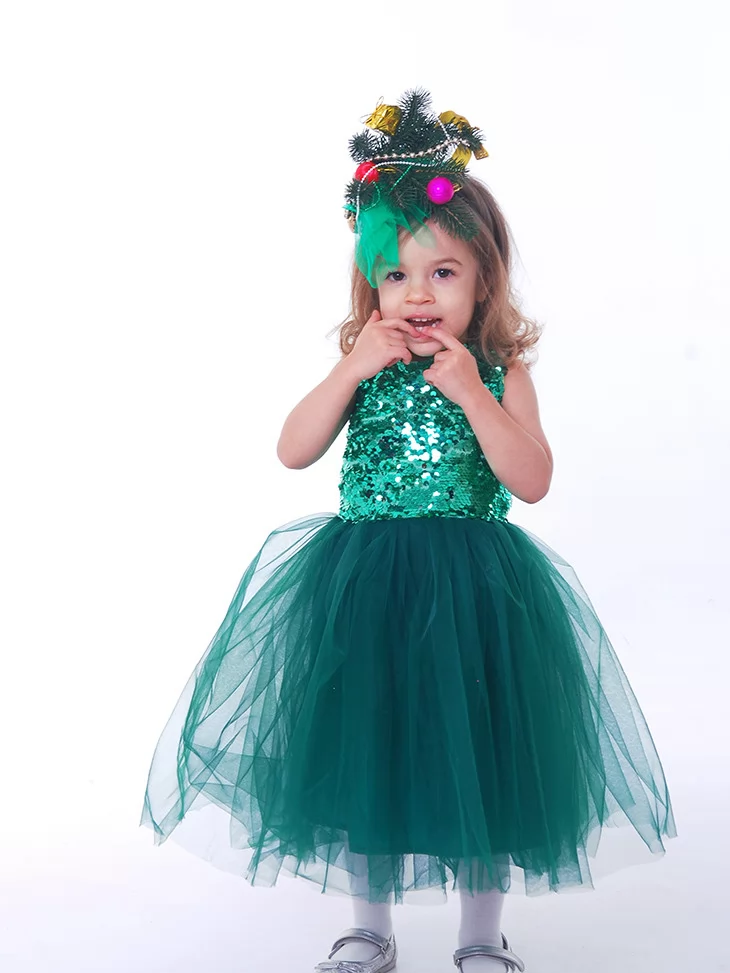 Яскравий, блискучий та по-справжньому новорічний образ, що створює атмосферу свята з першого погляду. Насичений зелений колір сукні нагадує пухнасті гілочки ялинки, а блискучий верх із паєтками додає святкового сяйва. Пишна фатінова спідниця створює об’ємний силует, а тематичний головний убір із декоративними елементами завершує образ маленької красуні-ялинки. Чудовий вибір для оренди карнавальних костюмів на новорічні ранки та святкові виступи.