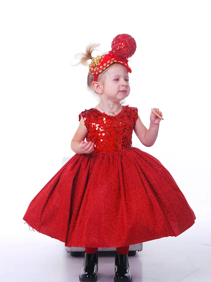 Костюм Червоного Святкового Сяйва стане чарівною прикрасою будь-якого дитячого свята та подарує море усмішок і яскравих спогадів. Основний образ виглядає ніжно й водночас ефектно, даруючи святковий настрій з першого погляду — ідеальний варіант для прокату карнавальних костюмів у наймолодшій віковій категорії.
