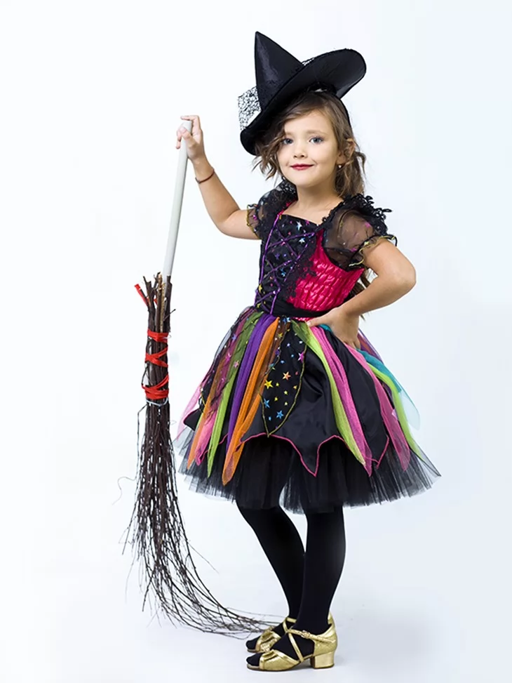 Костюм Весела Відьмочка Чарівної Ночі створює святковий настрій та дозволяє легко перевтілитися у маленьку магиню, а прокат карнавальних костюмів зробить підготовку до свята простою та приємною.