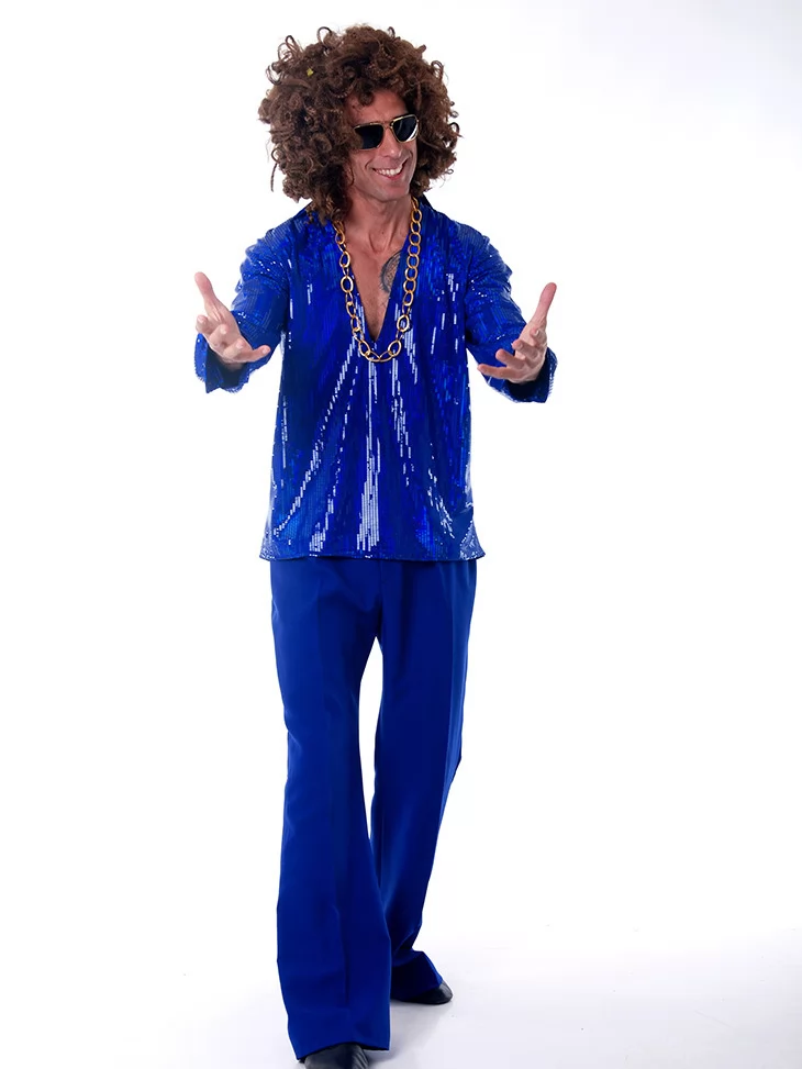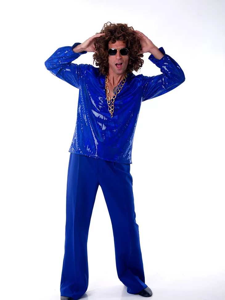 Прокат карнавальних костюмів дає можливість виглядати стильно та святково без зайвих витрат. Обери образ «Сапфірового Повелителя Диско» — і стань головною зіркою танцполу!